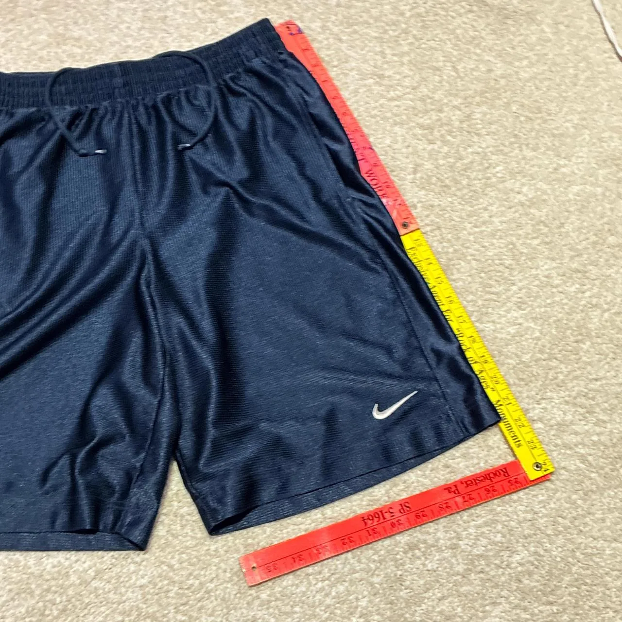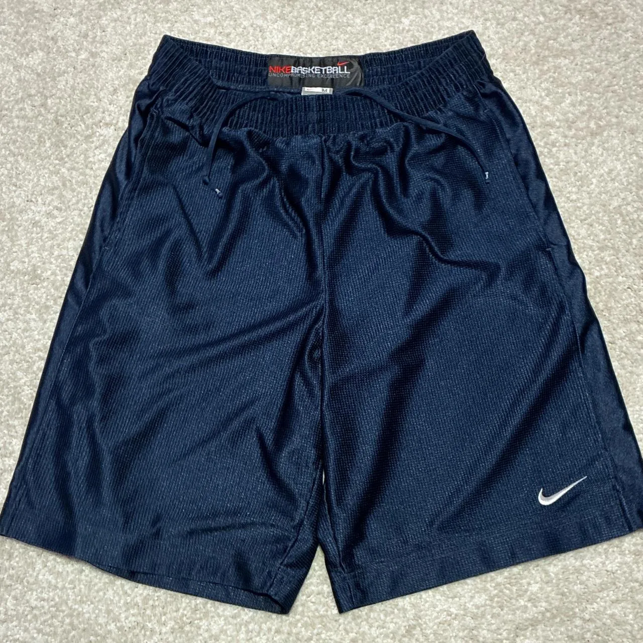 INSANE 90/00s Y2K NIKE Basketball Big Tag Silver/Orange Tag Navy Basketball Shorts w White Swoosh