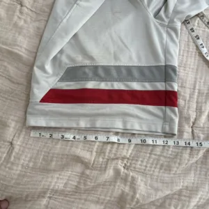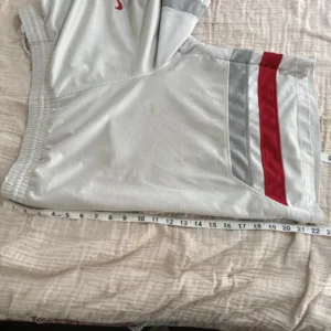 Nike white basketball shorts men’s large with red stripes . Small stains look at pics. #basketball #athletic