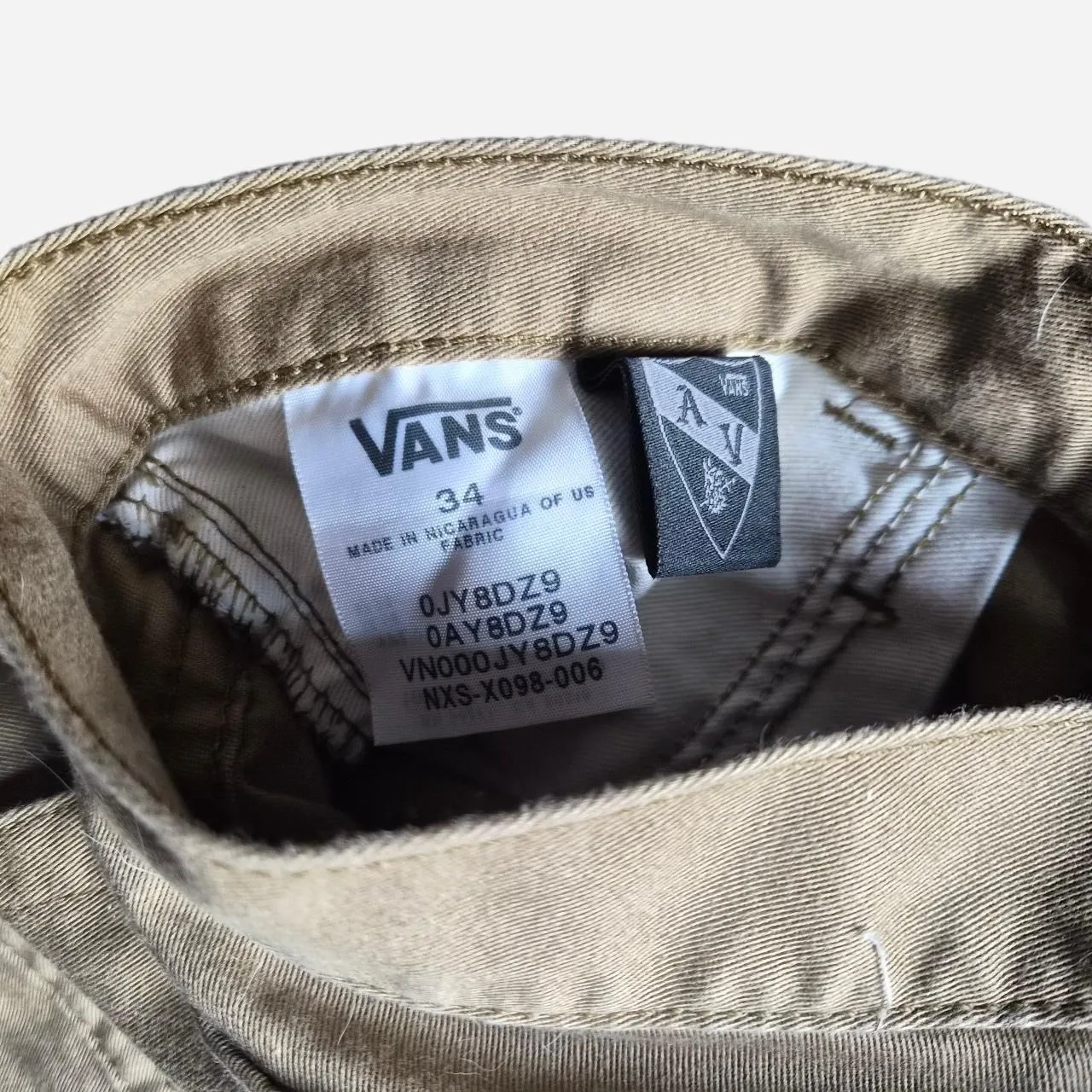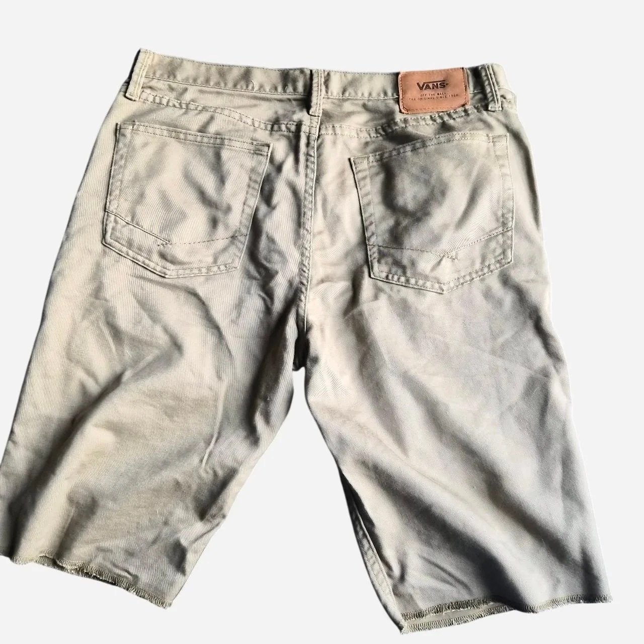 mens Vans tan shorts with surged ends (cut then sewed but not hemed) looks white in pick but it is tan. #skater #tan #mens #vans #shorts