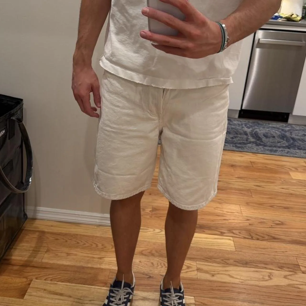 Men’s Zara white/cream denim long shorts/ jorts size 30