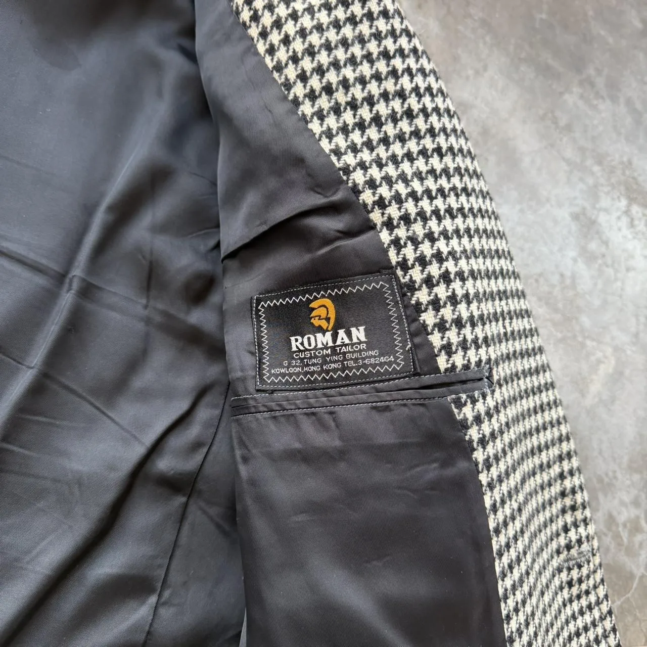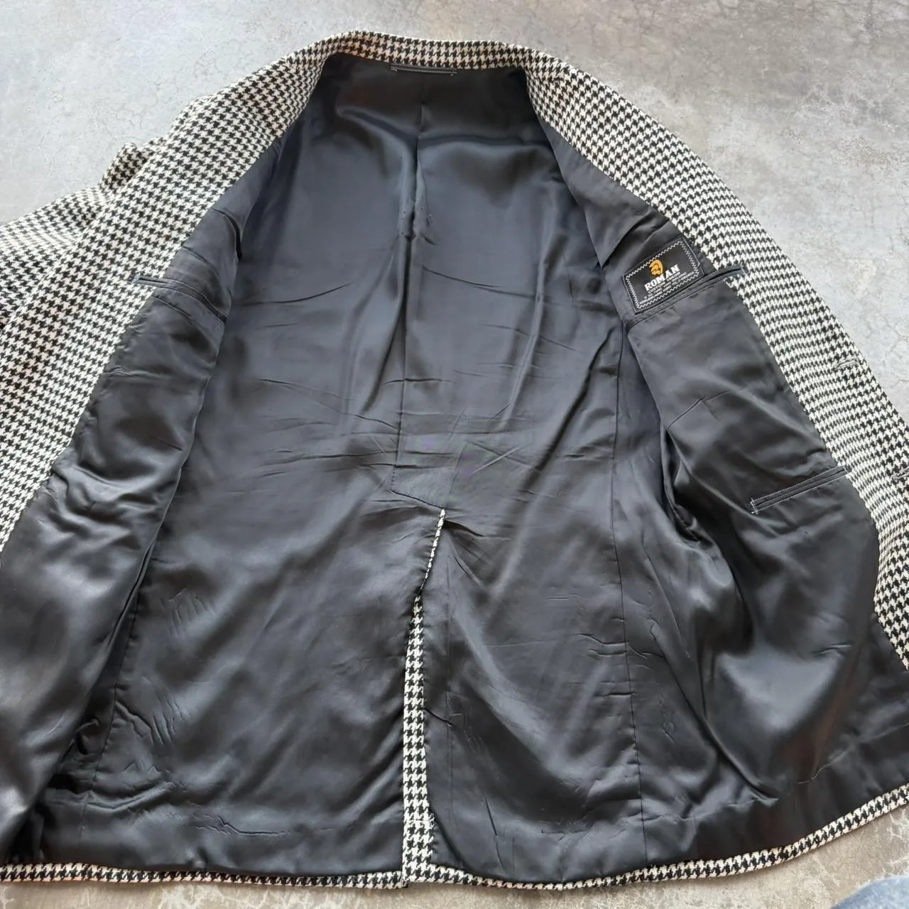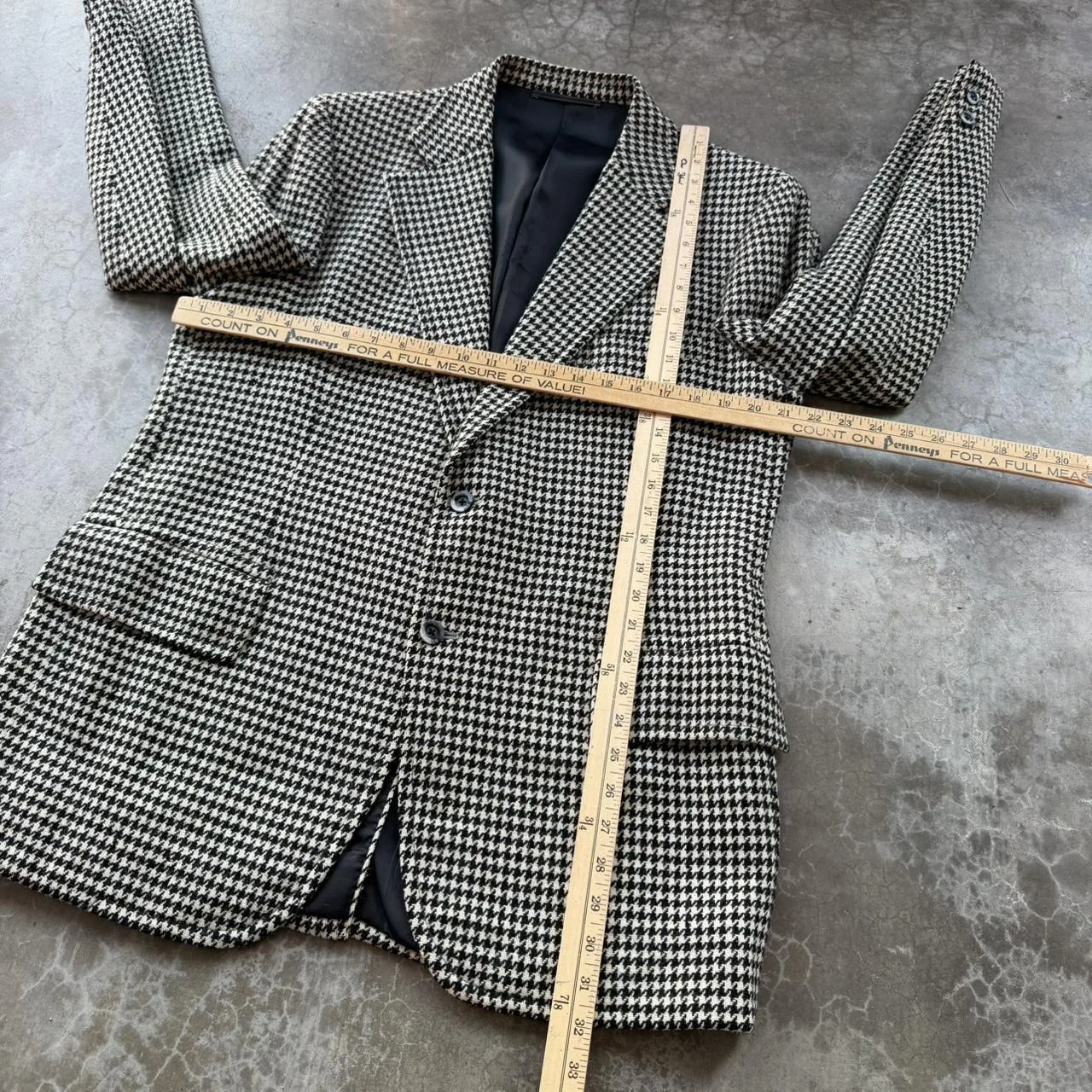 Vintage 100% Wool Houndstooth Black and white blazer suit sports coat jacket