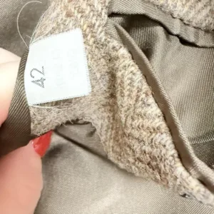 The product is a men’s blazer by Haggar, made of 100% wool in a stylish brown color. It is a regular size 42 blazer, featuring a classic 2-piece design suitable for formal occasions or professional attire. This blazer exudes sophistication and quality craftsmanship, perfect for the modern man looking to elevate their wardrobe with a timeless piece.