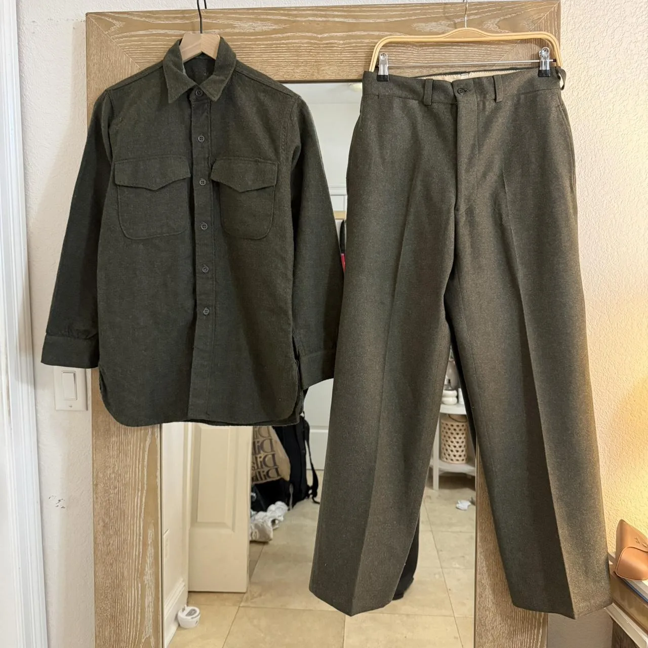 Vintage Olive green Wool Military WWII shirt and trouser set #vjntage #military #wwII #set