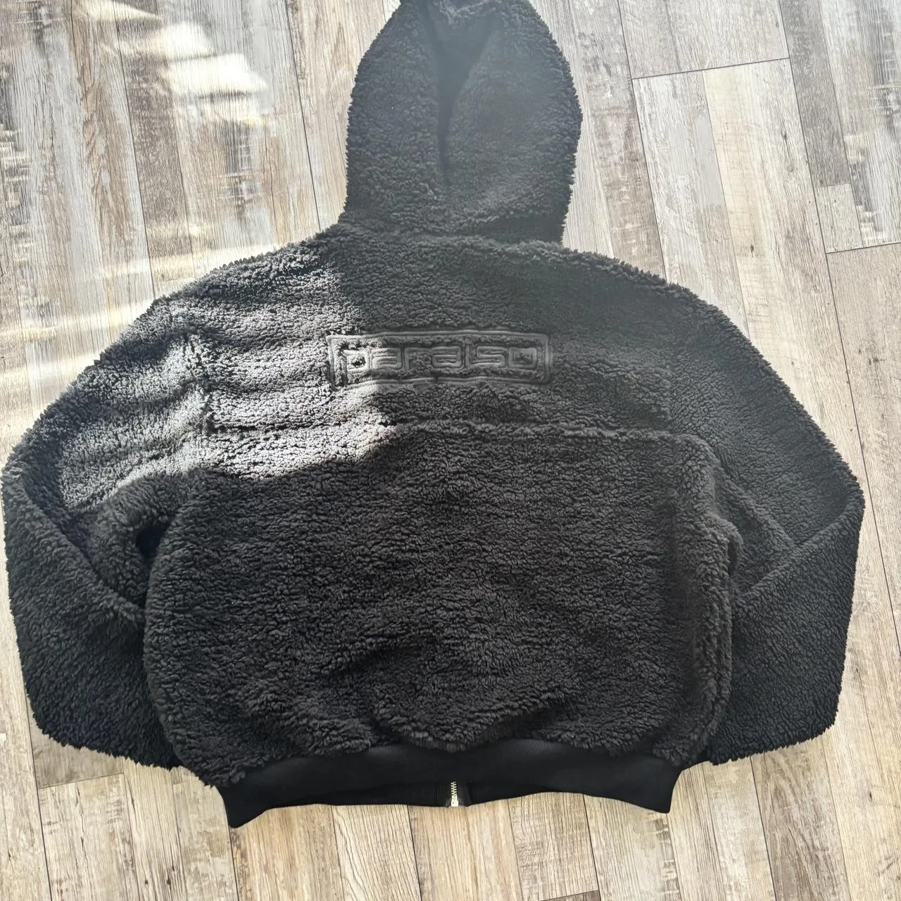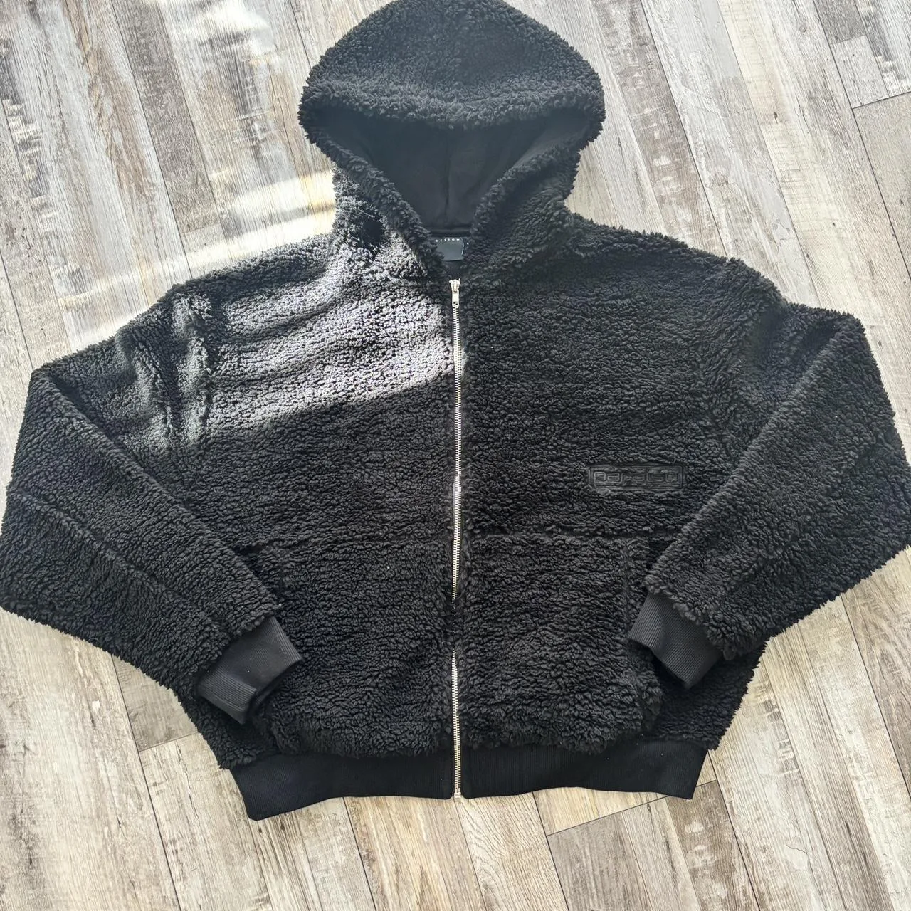 Black sherpa zip-up hoodie #hoodie #sherpa