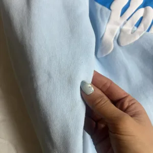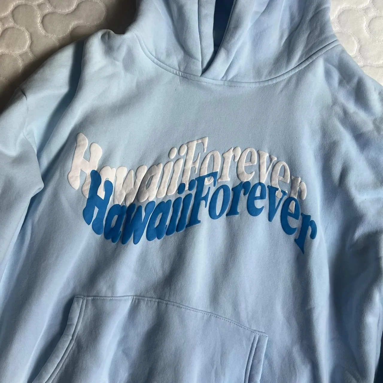honeycomb fleece, pastel blue, embroidered logo, oversized hoodie, relaxed fit, casual streetwear, cozy, soft material, logo sweatshirt, vintage style