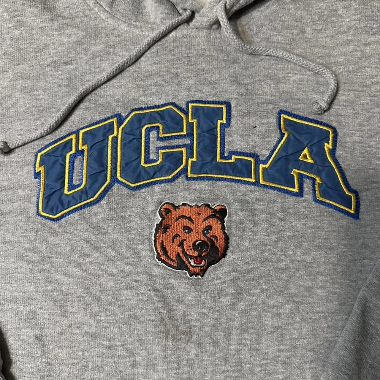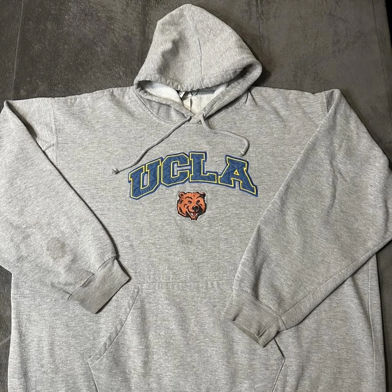 SIZE 2XL Grey UCLA hoodie with embroidered bear hoodie STAIN ON THE SLEEVE IS REMOVABLE Early 2000’s with the embroidery work