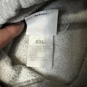 grey, embroidered bear, college hoodie, oversized, vintage, early 2000s, collegiate, casual wear, sporty, relaxed