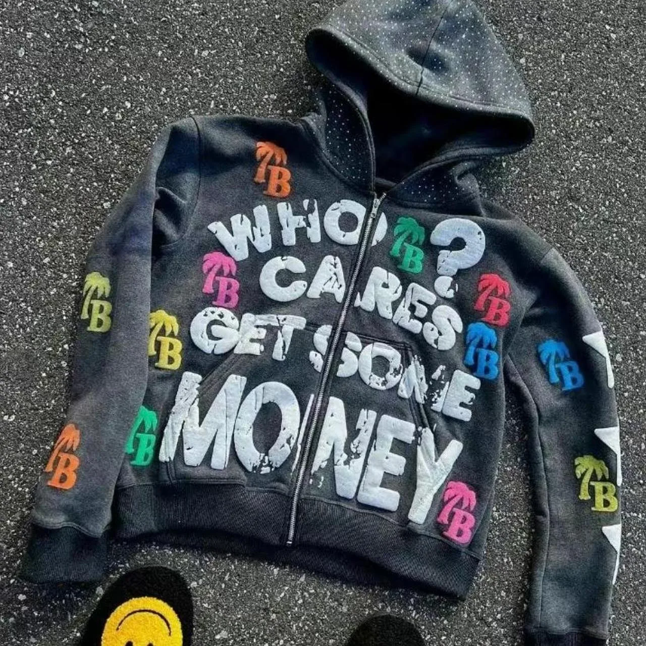 letter pattern, oversized hoodie, zipper hoodie, streetwear, retro sweatshirt, Y2K fashion, unisex jacket, graphic hoodie, casual street style, sporty pullover