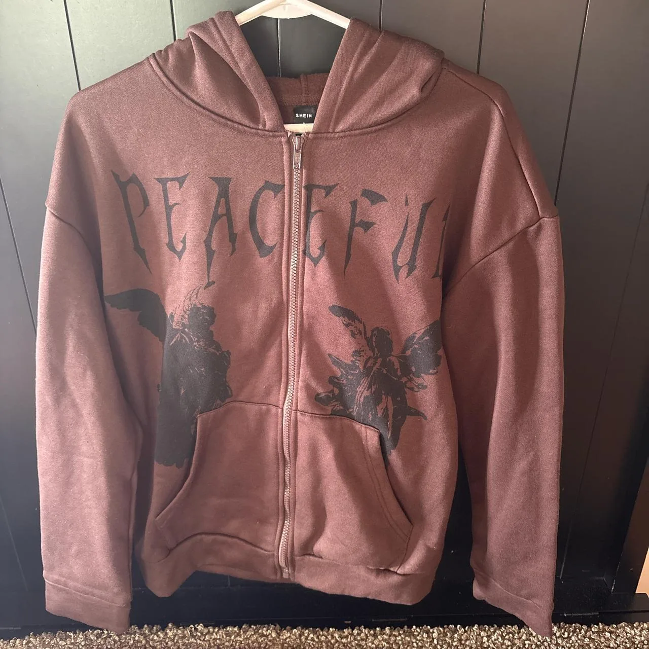 Brown and black #shein zip-up hoodie #peaceful #angels