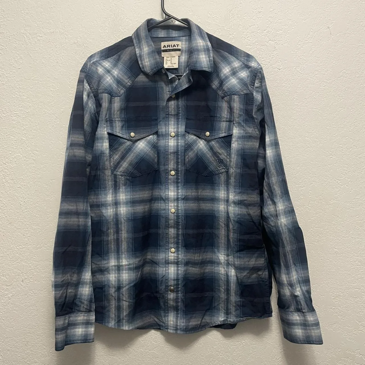 Ariat Retro Fit Plaid Western Snap Button Long Sleeve Shirt Men”s M Blue White
