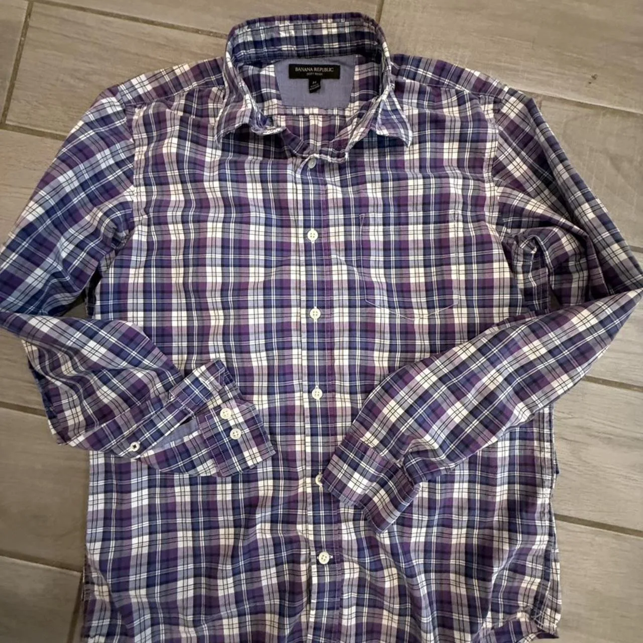 Banana Republic purple plaid button-up shirt Size M #preppy #menswear