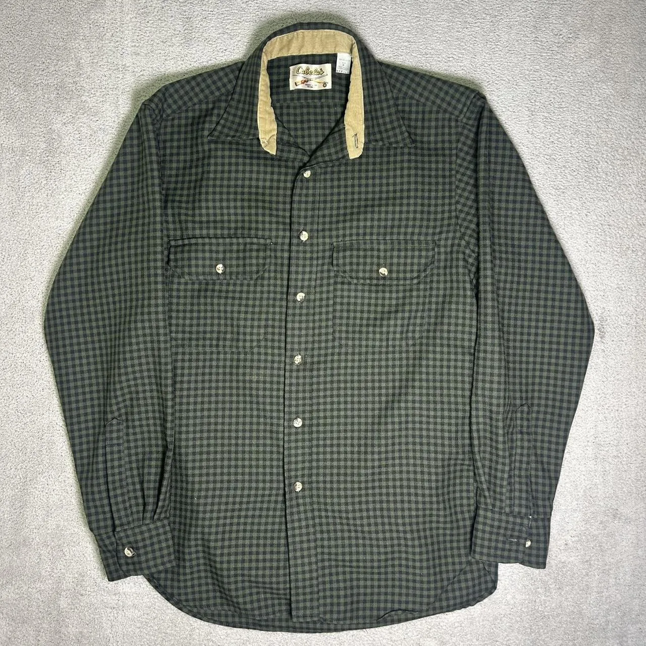 Vintage Cabela’s Flannel Shirt Men’s Medium Green Plaid USA Made Polyester
