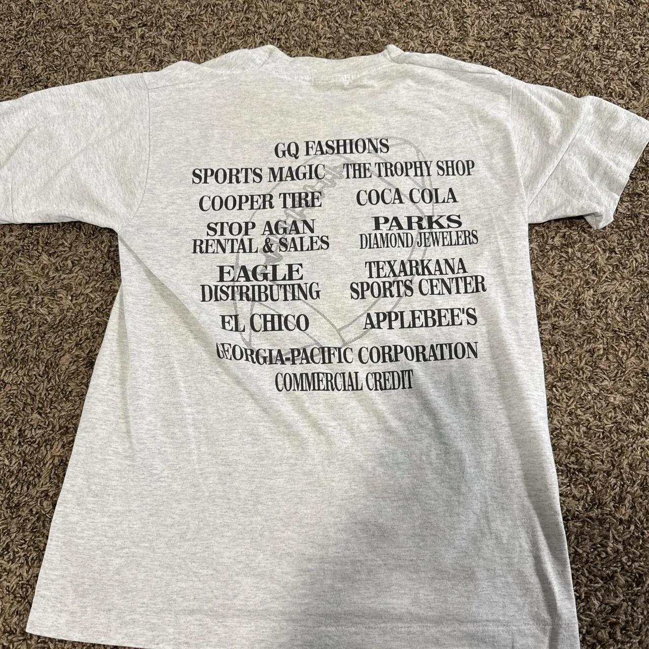 white, graphic tee, sportswear, nostalgic, 90s vibe, bold print, casual, athletic, collectible, team spirit