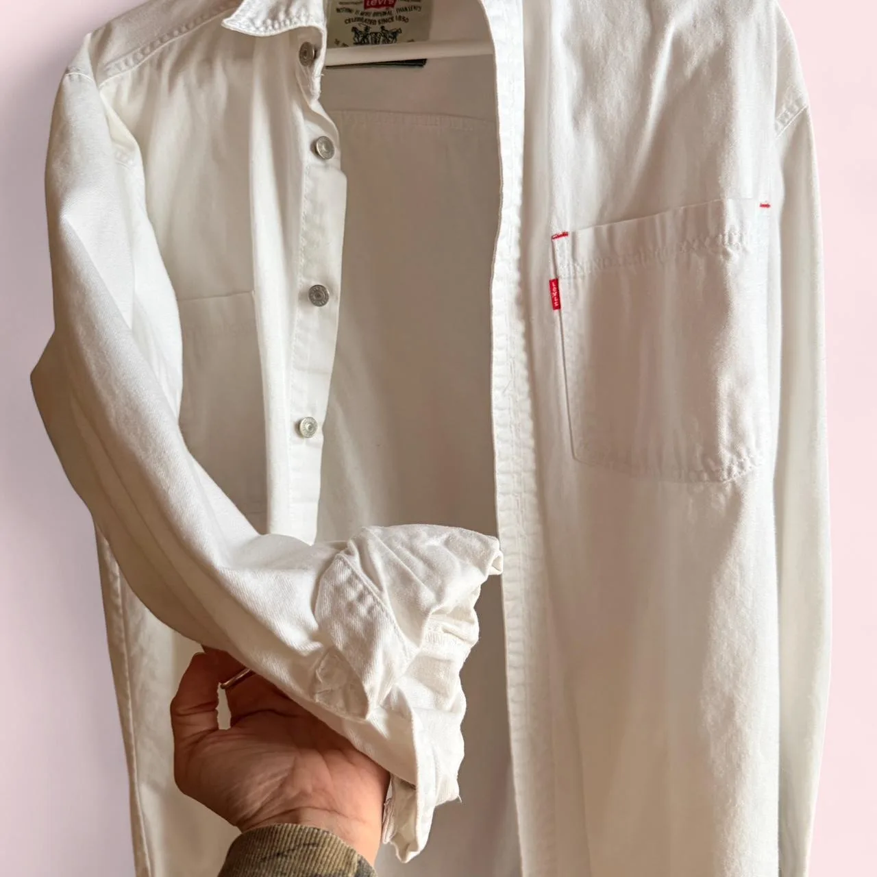 100% cotton Levi’s white button up shirt #denim it’s a men’s size small but would fit a women’s medium for sure.