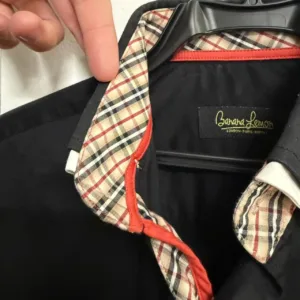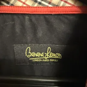 Banana Lemon black shirt with checkered plaid collar and red accent #preppy #menswear #bananalemon #blackshirt #dinnershirt
