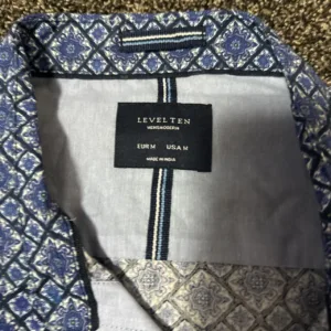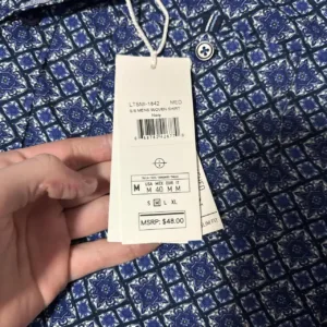 Navy blue patterned short sleeve button-up shirt Size M #menswear #shirts