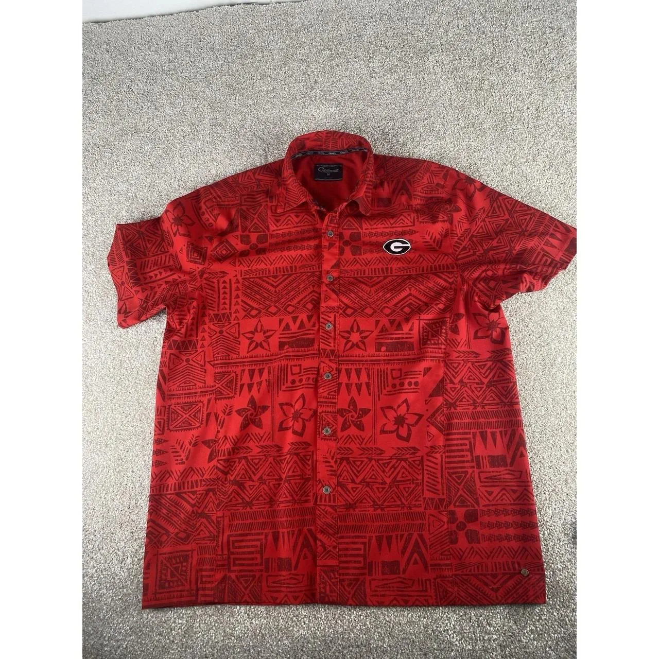 Georgia Bulldogs UGA Chiliwear Aztec Floral Hawaiian Red Shirt Mens Medium NCAA