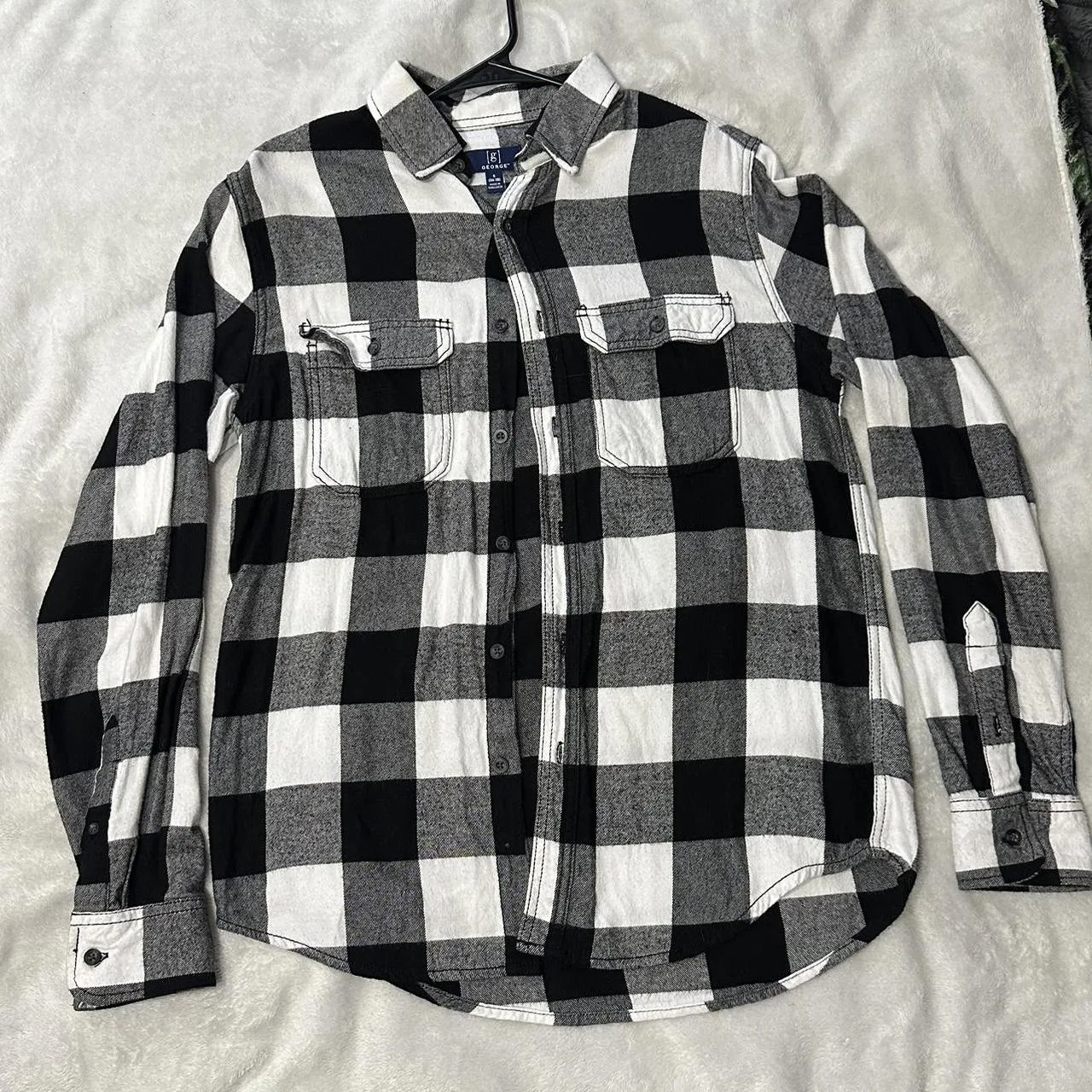 white and black plaid button-up shirt Size S #flannel #menswear