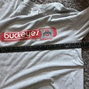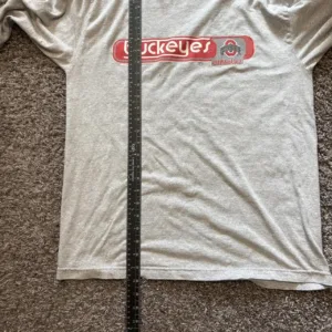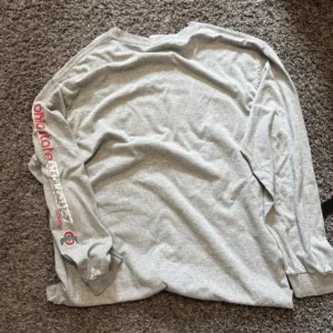 vintage long sleeve, buckeyes tee, 2000s style, sportswear, college football, retro athletic, grey sweatshirt, athletic apparel, sleeve detail, collegiate fandom