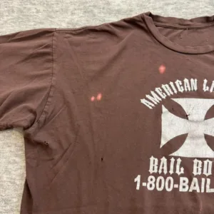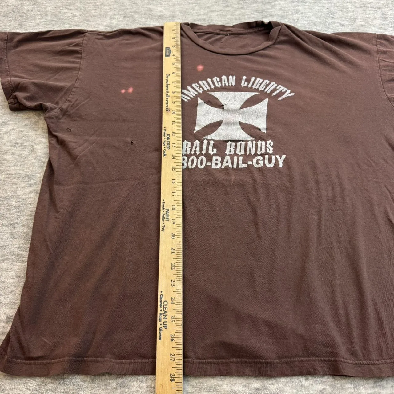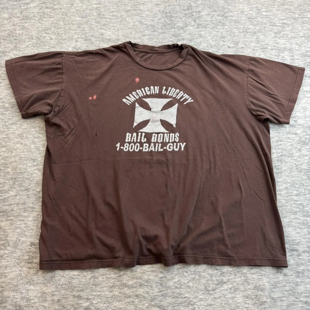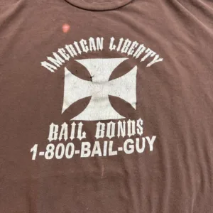 Brown vintage American Liberty Bail Bonds iron cross graphic biker tee shirt boxy and baggy fit
