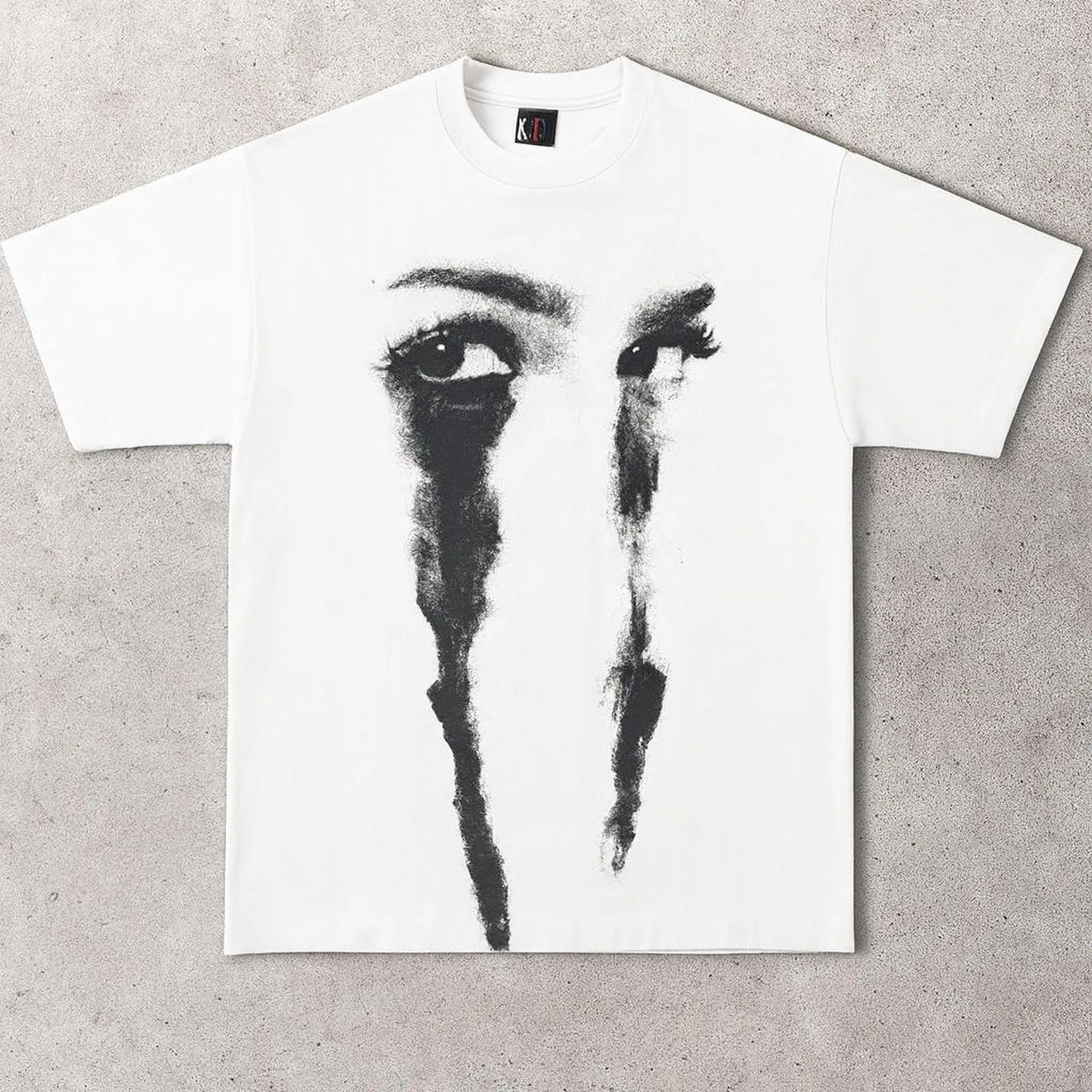 Bold vintage Y2K vibes 🌌🖤 – iconic crying eyes graphic print on a clean white tee. Perfect for edgy streetwear fits, pairing with cargos, denim, or layered looks.