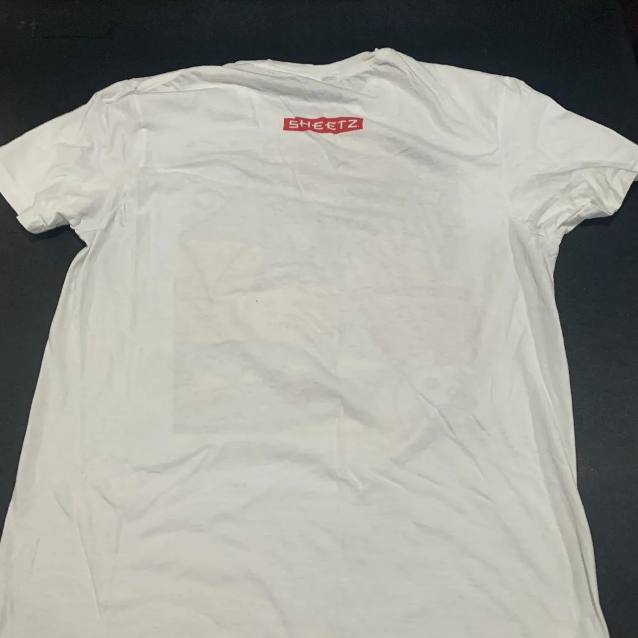 White graphic tee with a unique design, featuring a bold multi-coloured print #streetwearvibes . Men’s large sheetz fast food stickers vivid white retro
