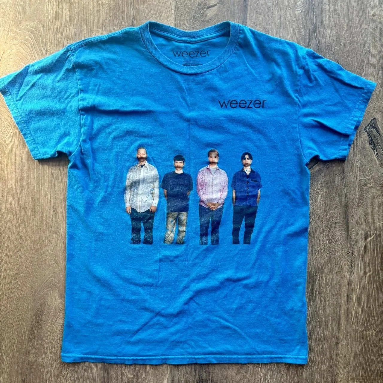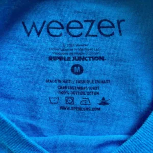 Weezer Blue Album Teal Shirt. Screenprint tag. Modern shirt. Size Medium. One sided graphic. Ripple Junction. 2024.