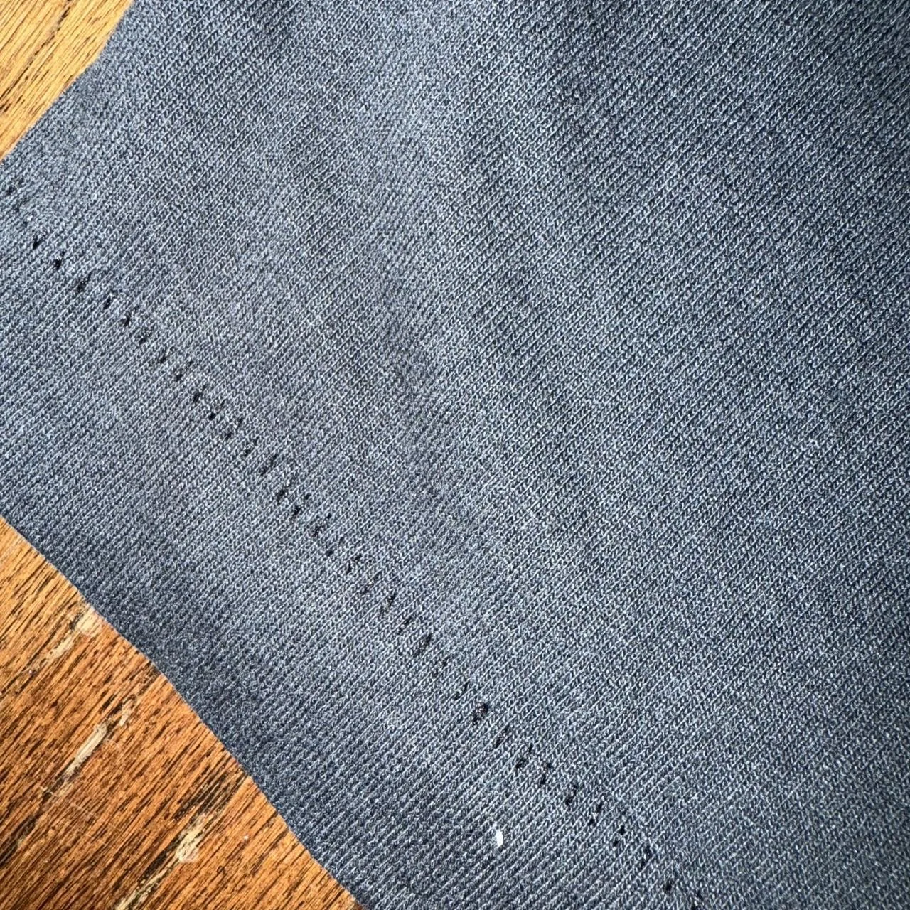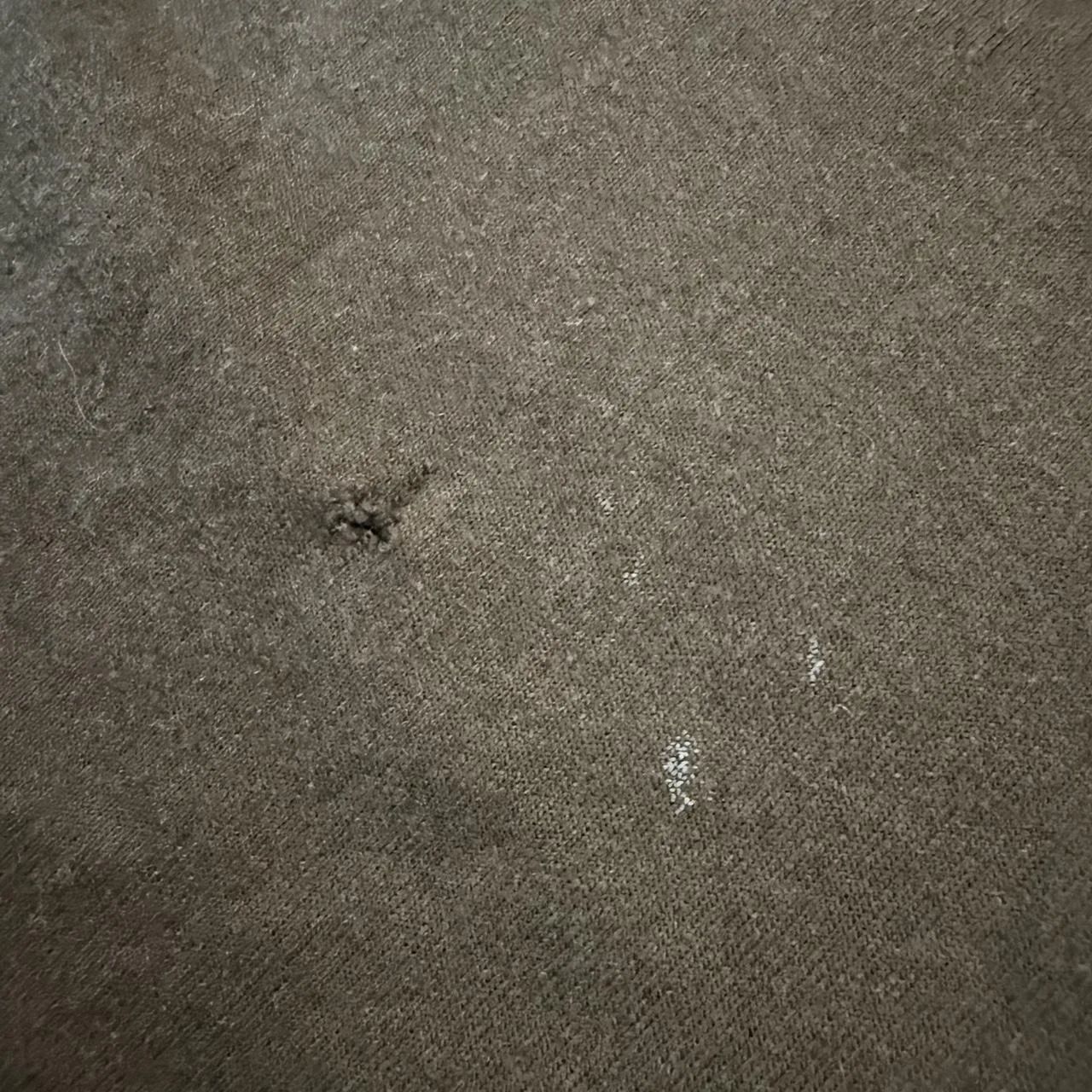 Small hole in the bottom front of shirt and small paint stain on back