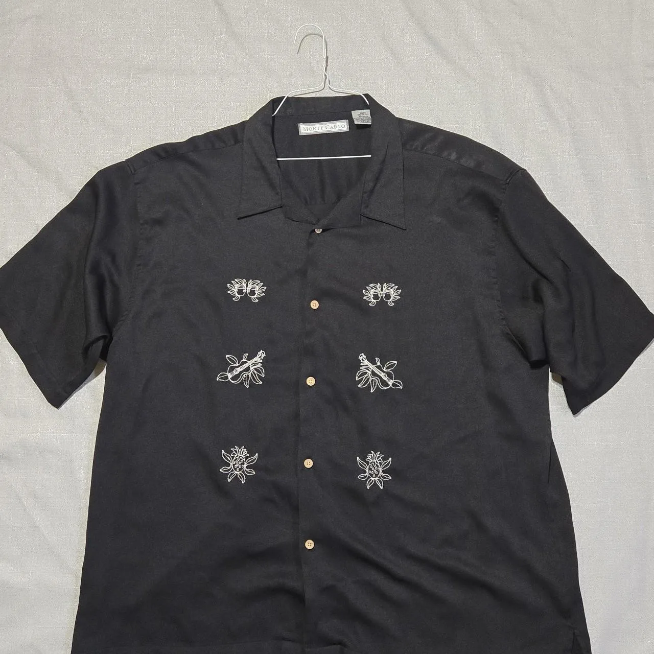 Monte Carlo black button up shirt with white embroidery Size 3XL #menswear #embroidery