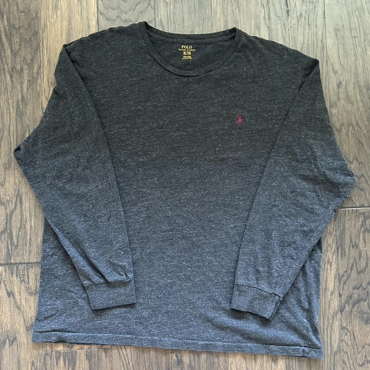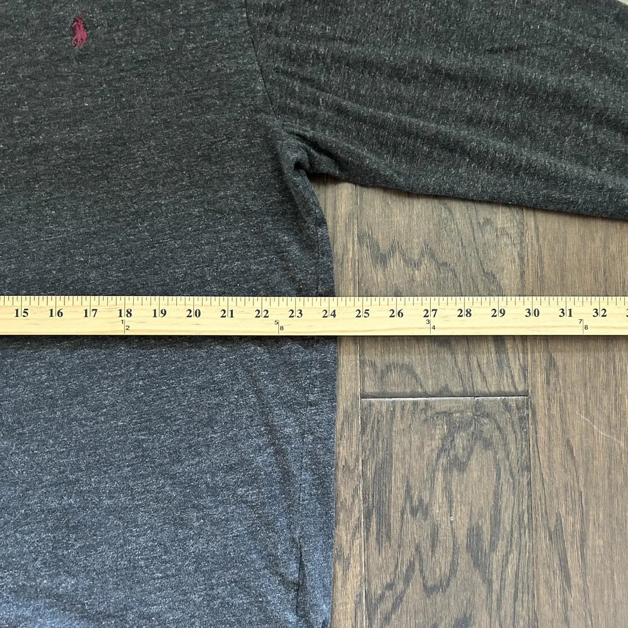 Long sleeve Polo Ralph Lauren cotton t-shirt, grey shirt with a maroon embroidered polo Ralph Lauren logo, cuffs on the sleeves, all stains and flaws depicted clearly in the photos, message me with any questions! #polo #poloralphlauren #formal #casual #streetwear