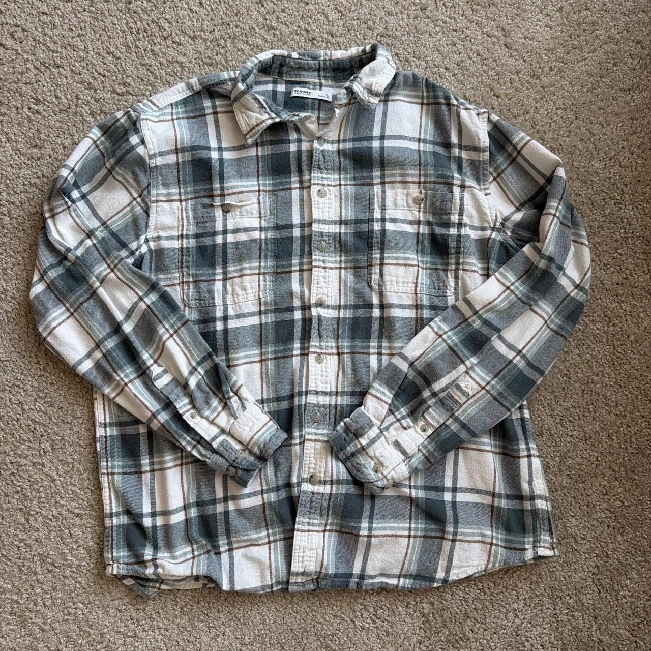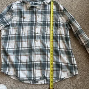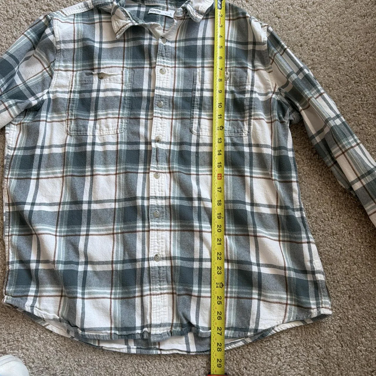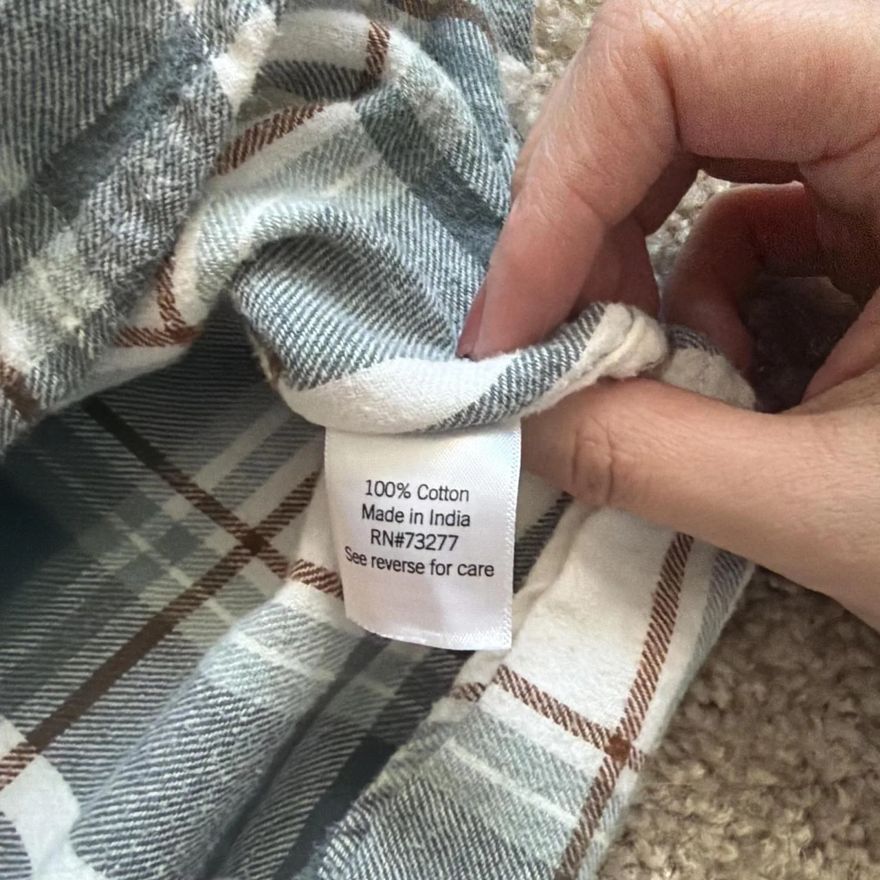 100% cotton. thicker than a plaid men’s shirt but not as thick as a full flannel!