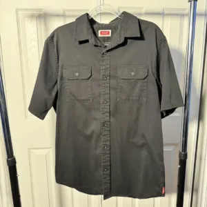 black, button-down, casual, streetwear, short sleeves, structured, minimal, versatile, cotton