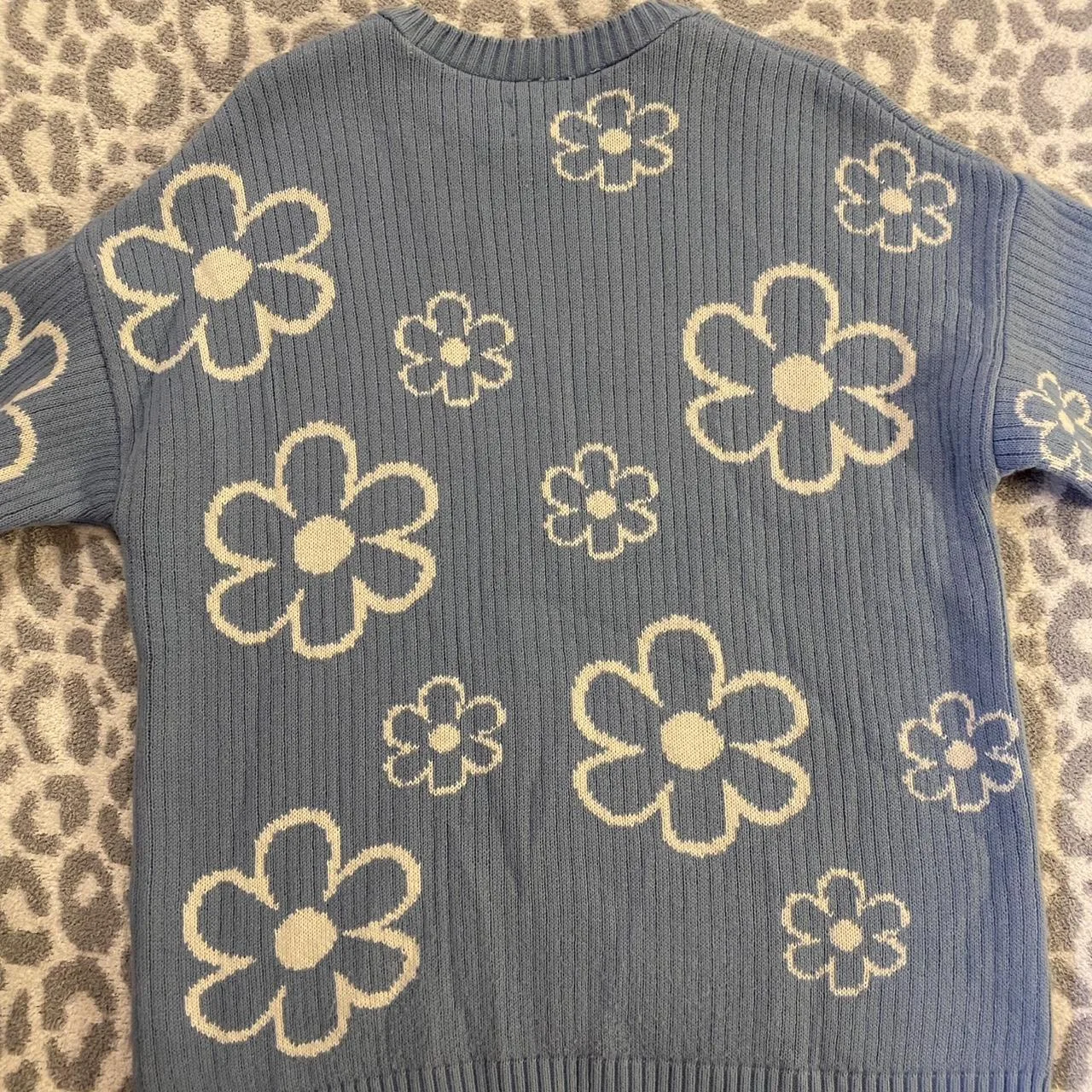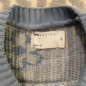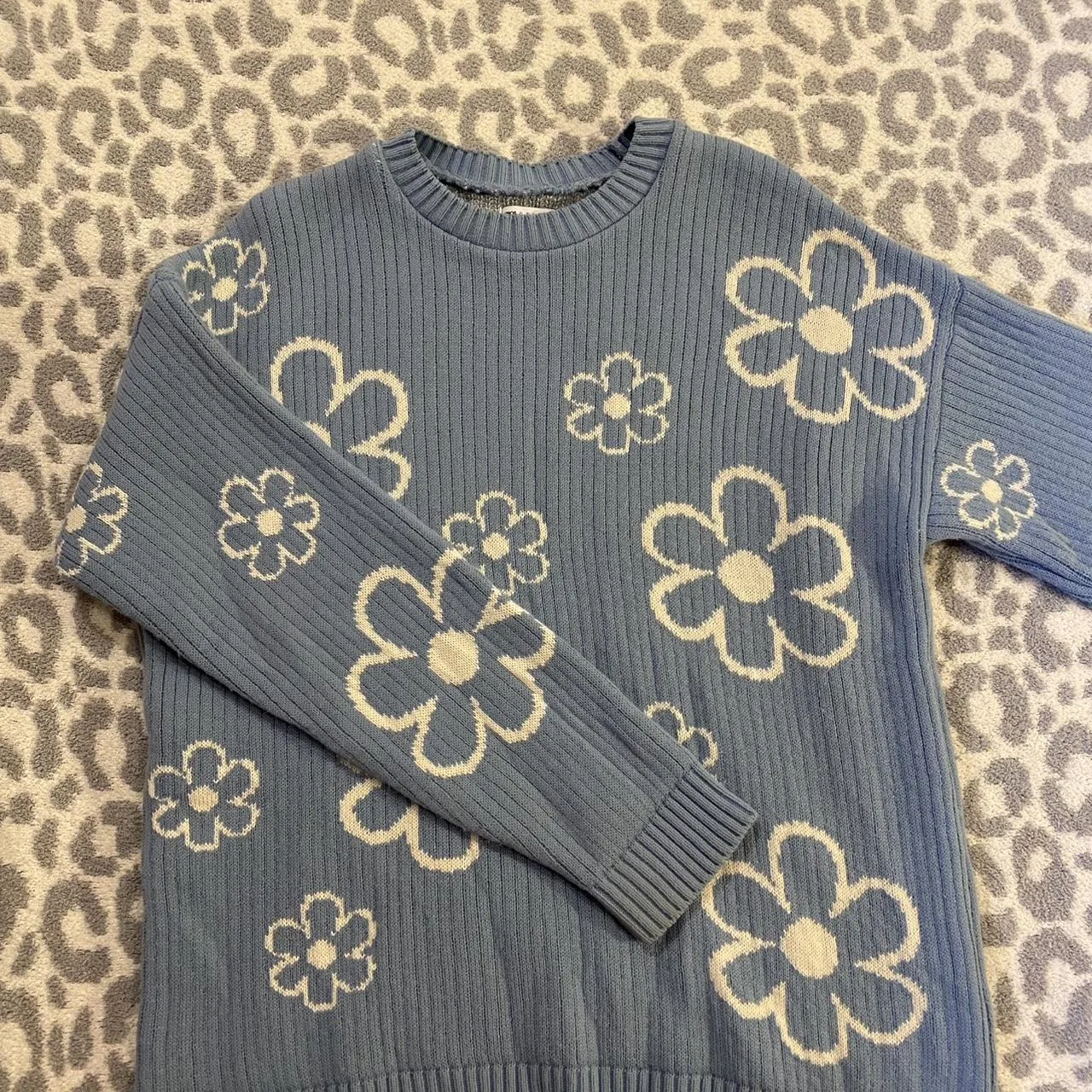 Blue ASOS sweater with flower designs. Size XS, fits a bit bigger.