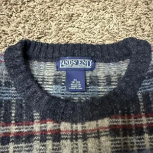 Lands End 100% Wool Men’s XL Sweater Multicolor Plaid Like Design #retro