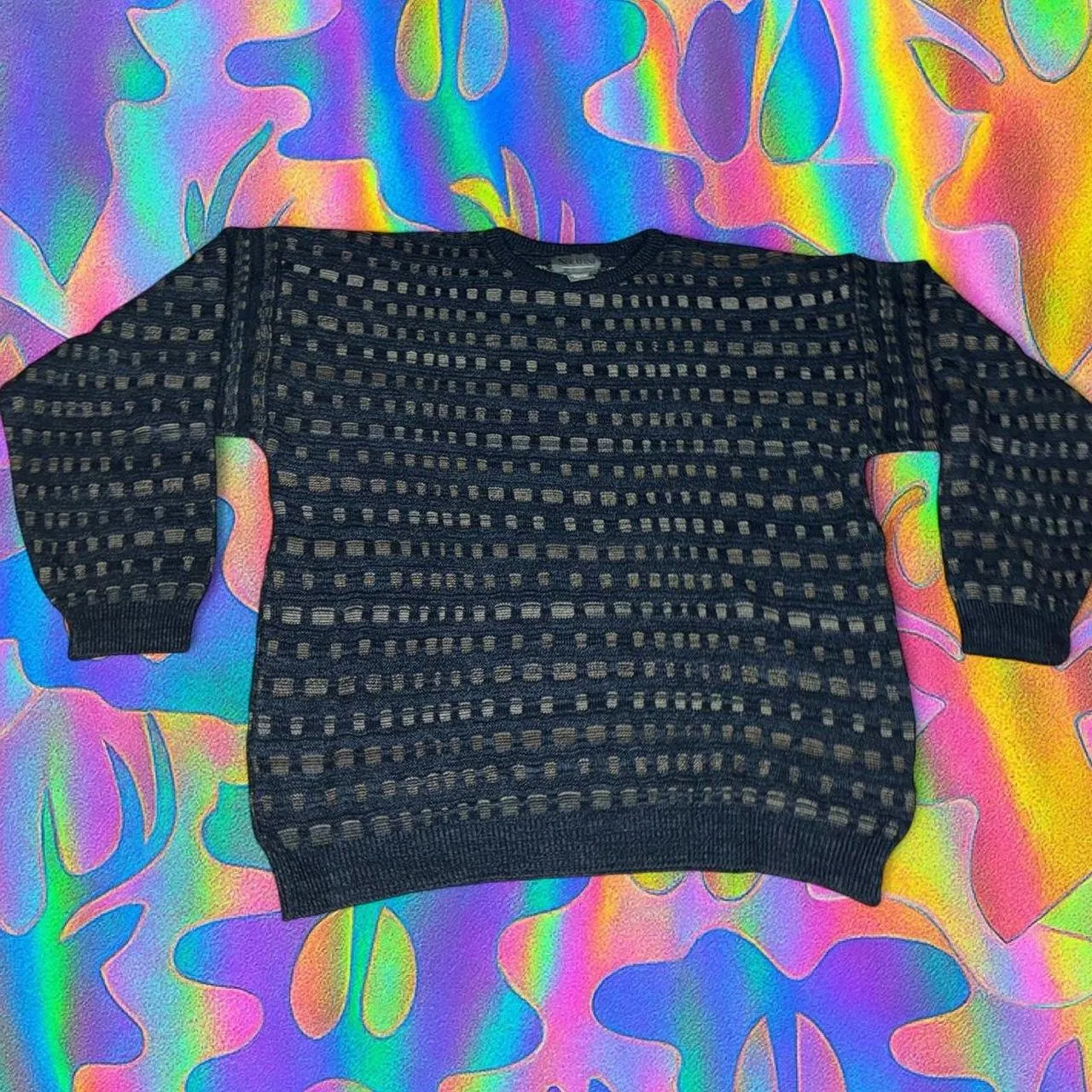 90s vintage Black and grey vintage 90s knit sweater knitwear #knit #grandpa #sweatshirt #vintage