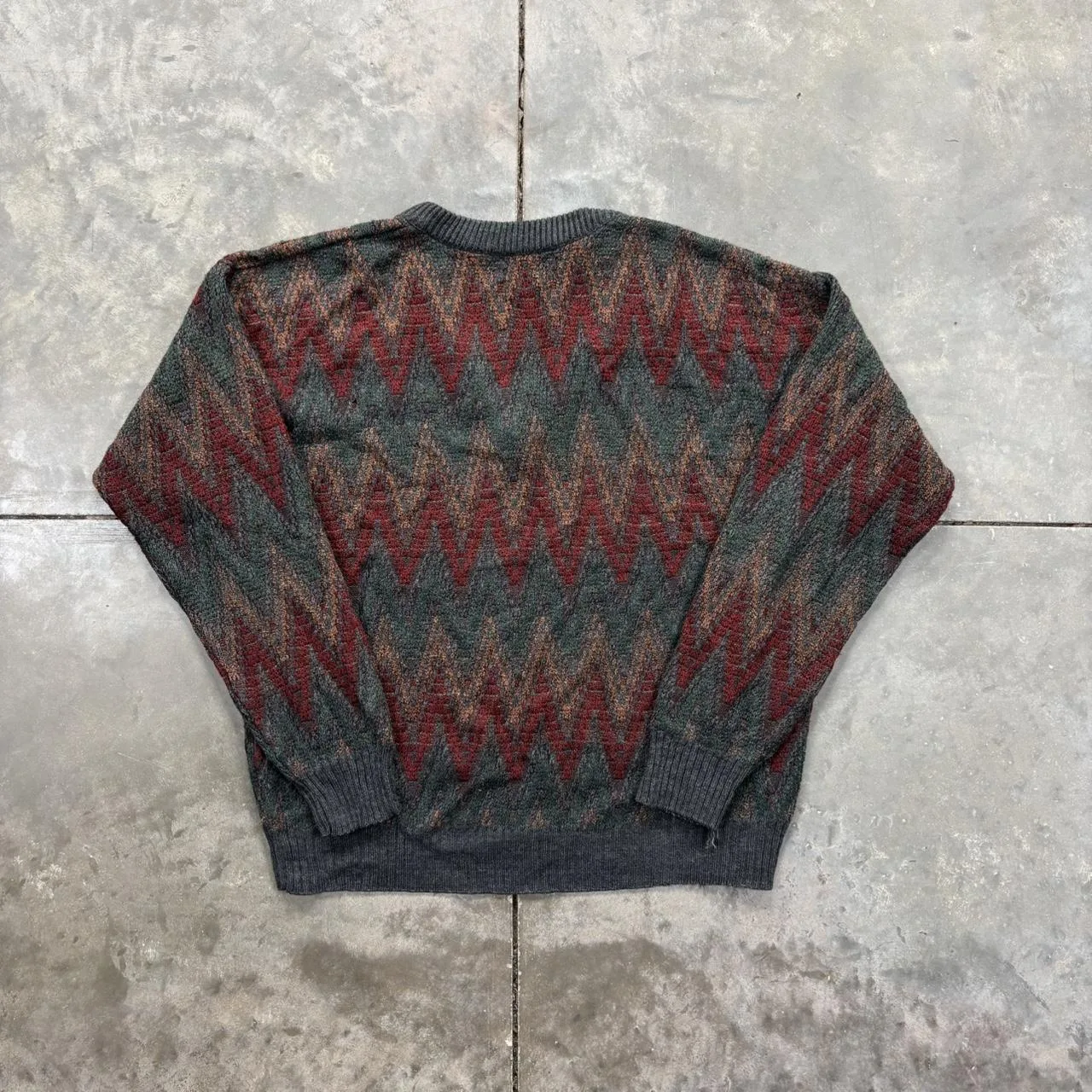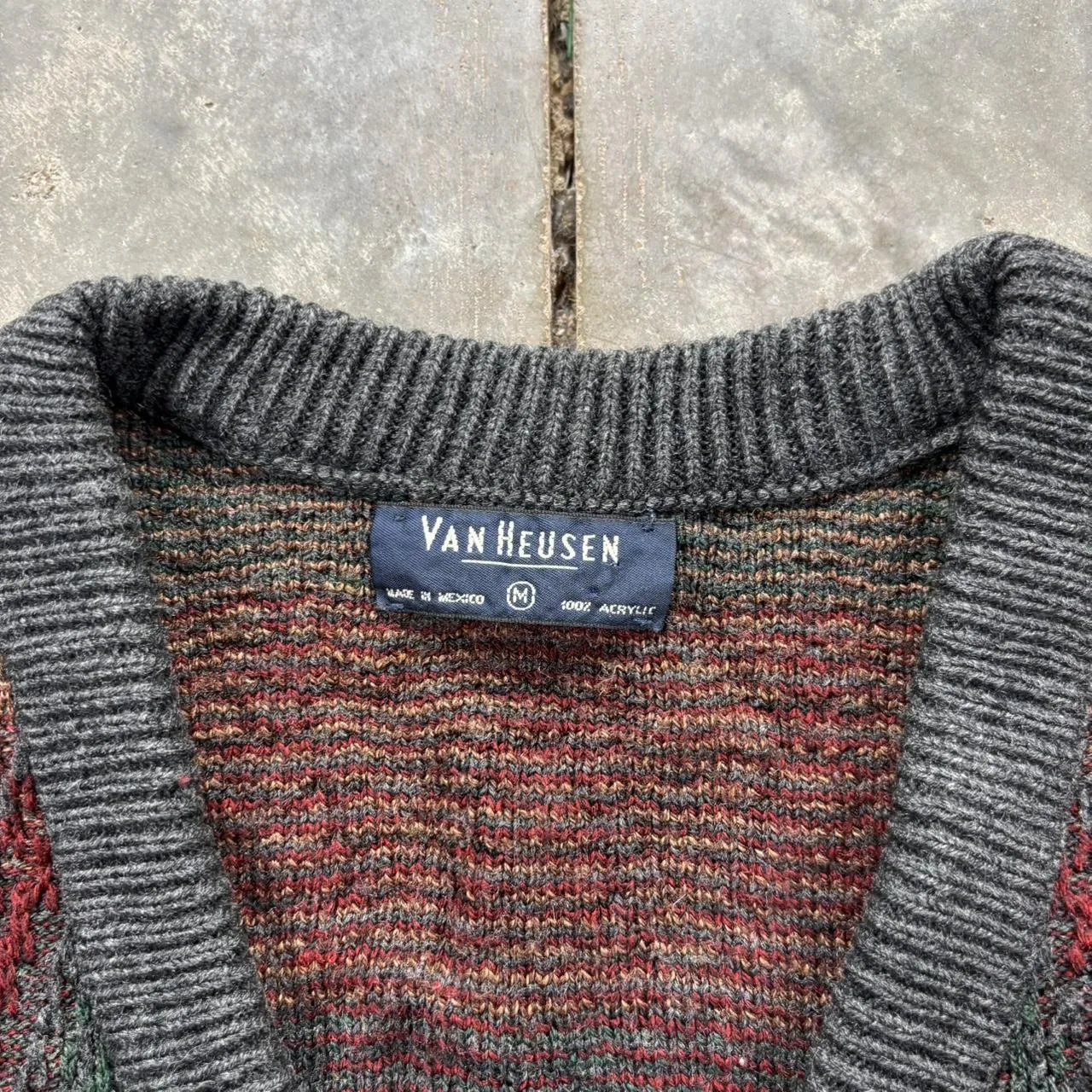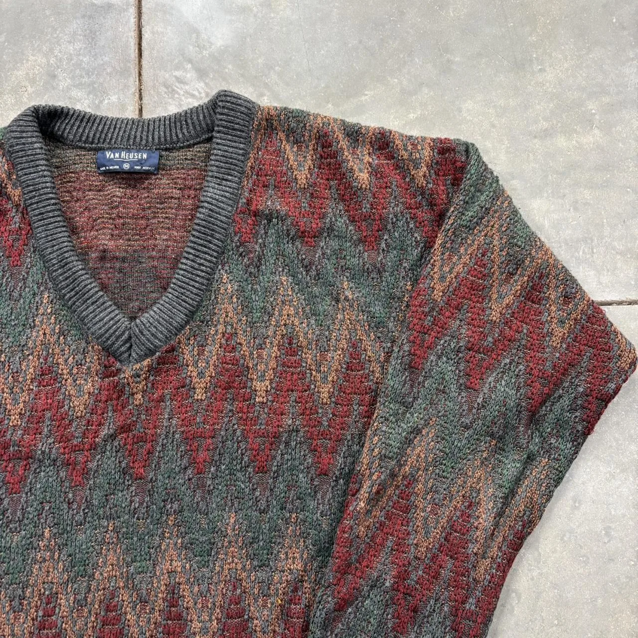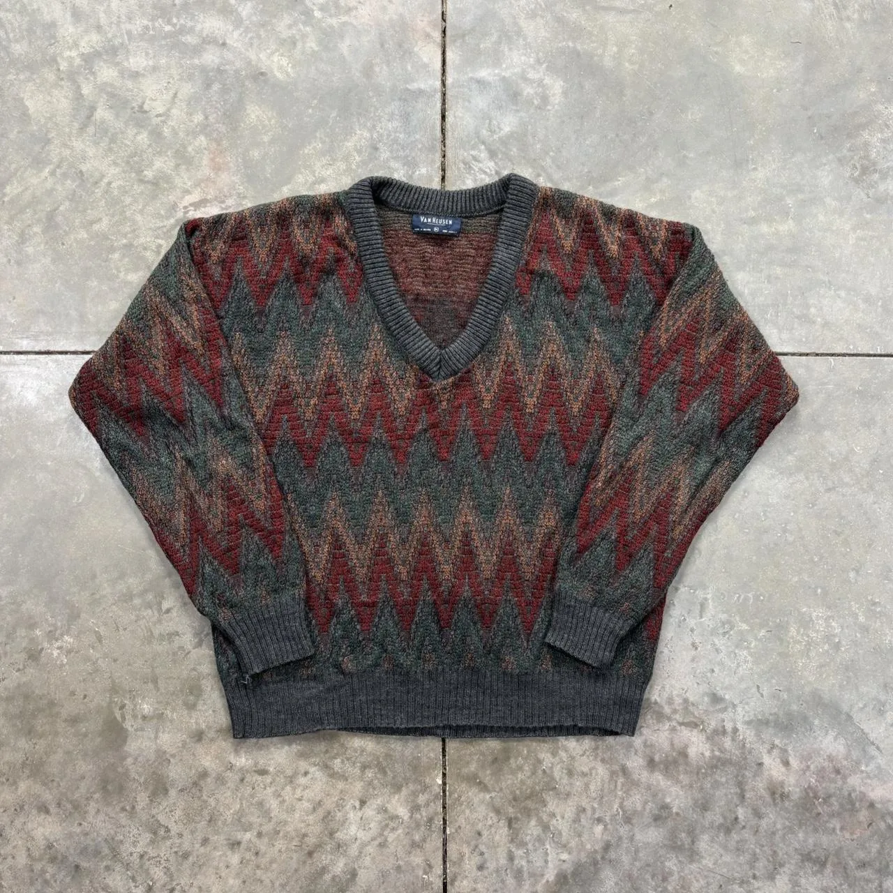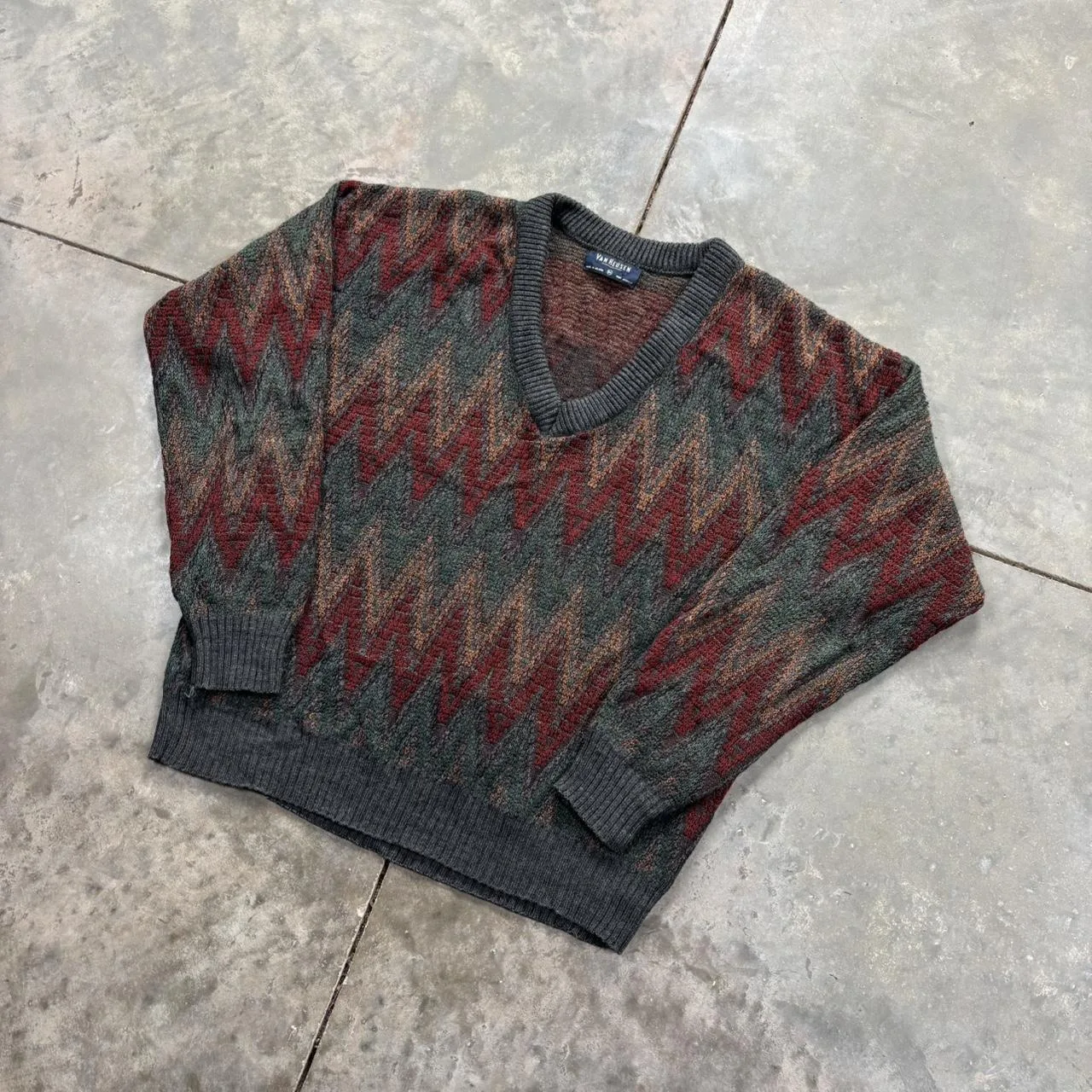 Vintage 90s Van Heusen zig zag striped v neck sweater, very nice colors