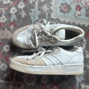 White and tan Adidas Originals trainers, size 8.5 and worn in