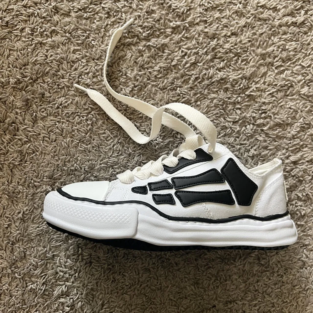 black and white sneakers, chunky sole, skate vibe, graphic print, street style, casual footwear, high-top, monochrome, urban fashion, modern sneakers