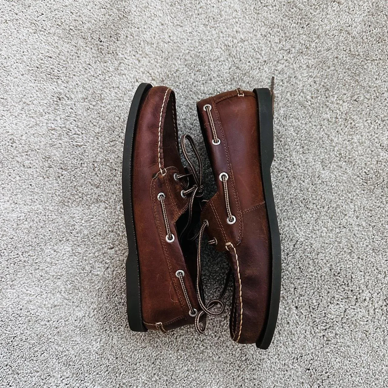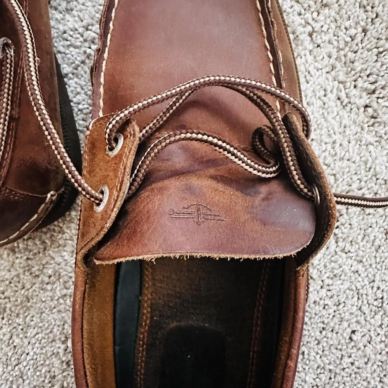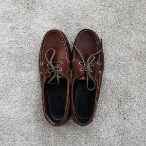 Brown color. Used and in great condition. Upper leather. Good for summer, fall, travel, outdoors, boating, etc.