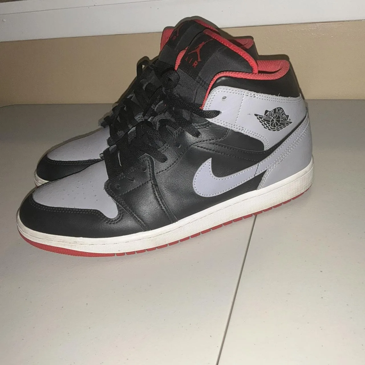 Black and red Air Jordan 1 Mid trainers #basketball #sneakers