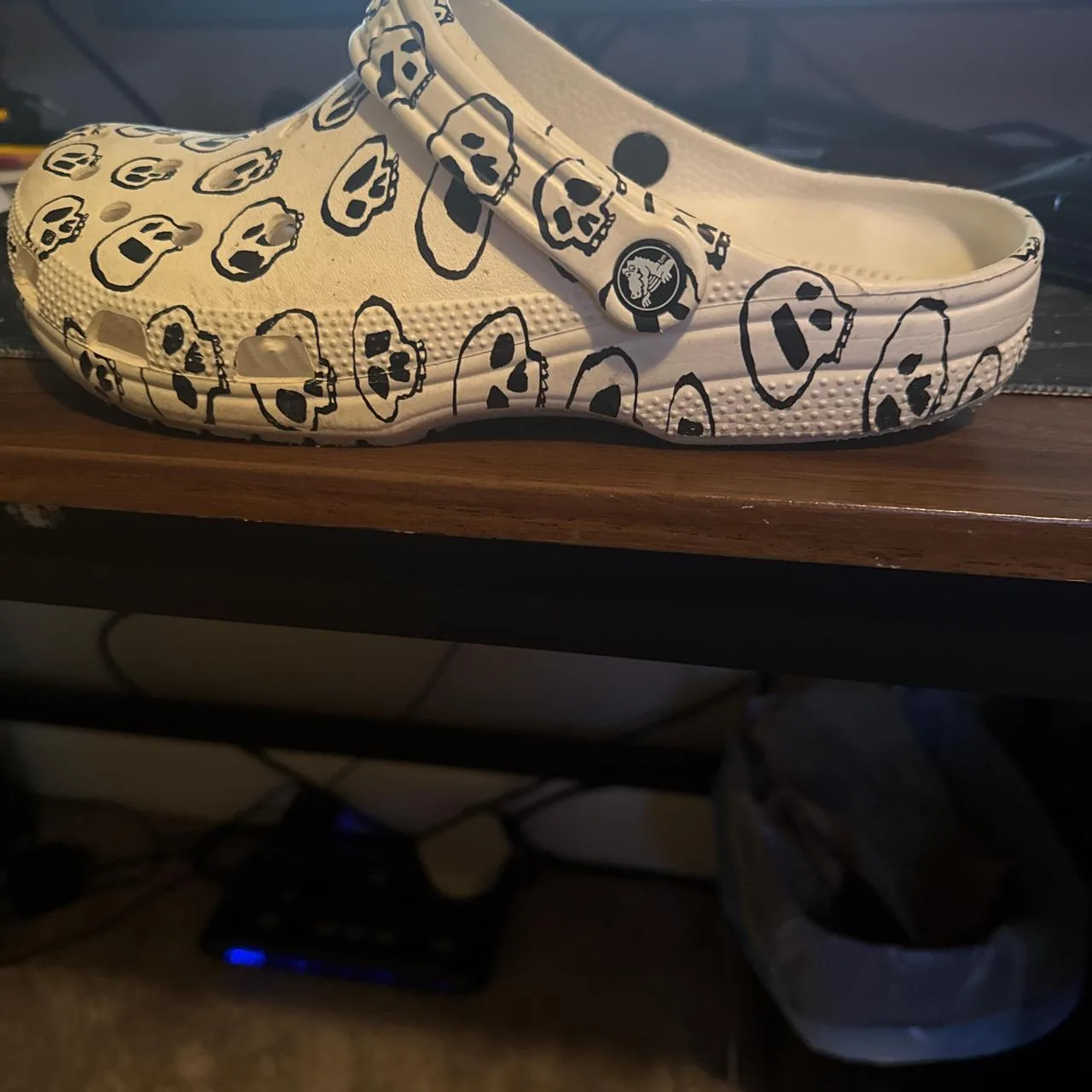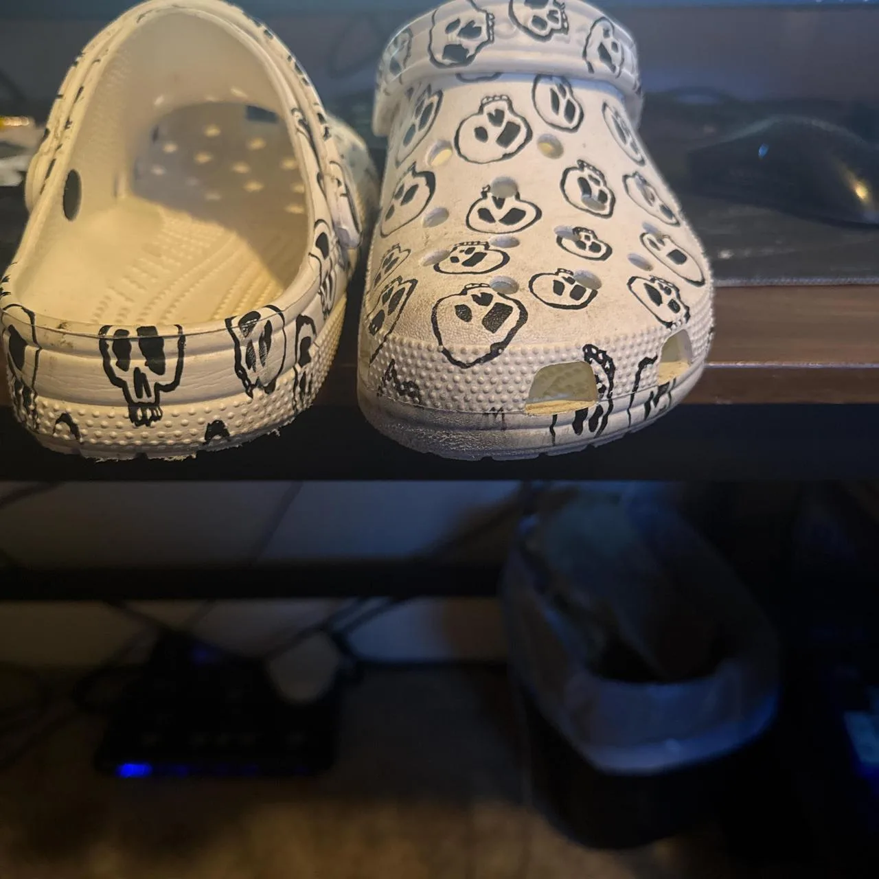 Slightly used skull crocs