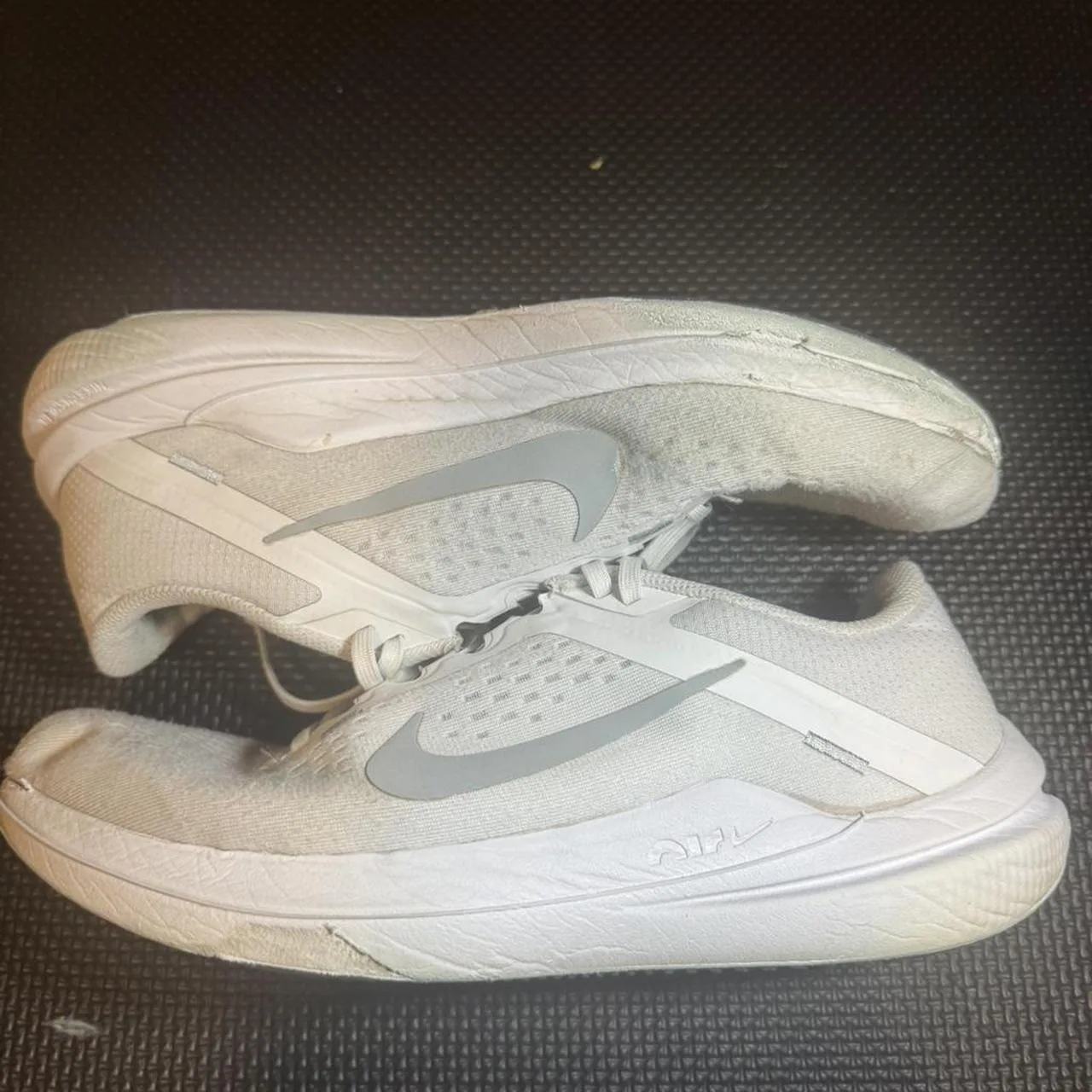 white sneakers, athletic shoes, distressed, running footwear, sport style, casual kicks, worn out, gym shoes