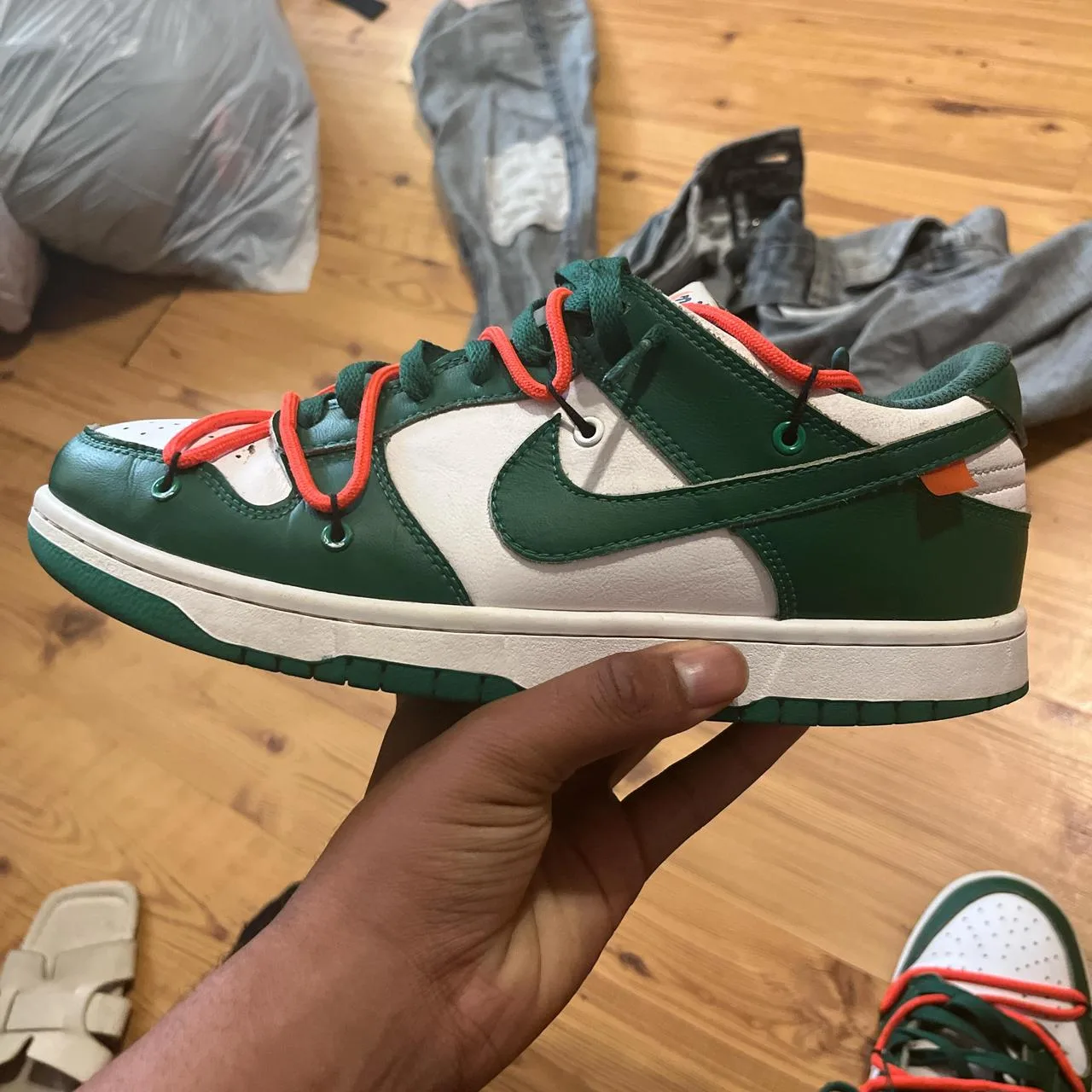 Off white pine green dunks they are in okay condition they just need some replacement shoes laces for them besides that they are good