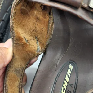 Skechers Vintage Chunky Brown Leather Fisherman Platform Sandals Men 10 Women 11. In pre-owned condition. Leather from inside has cracks. Signs of creasing , and scuffs to Leather. Please refer to pictures for more detailed condition of item.