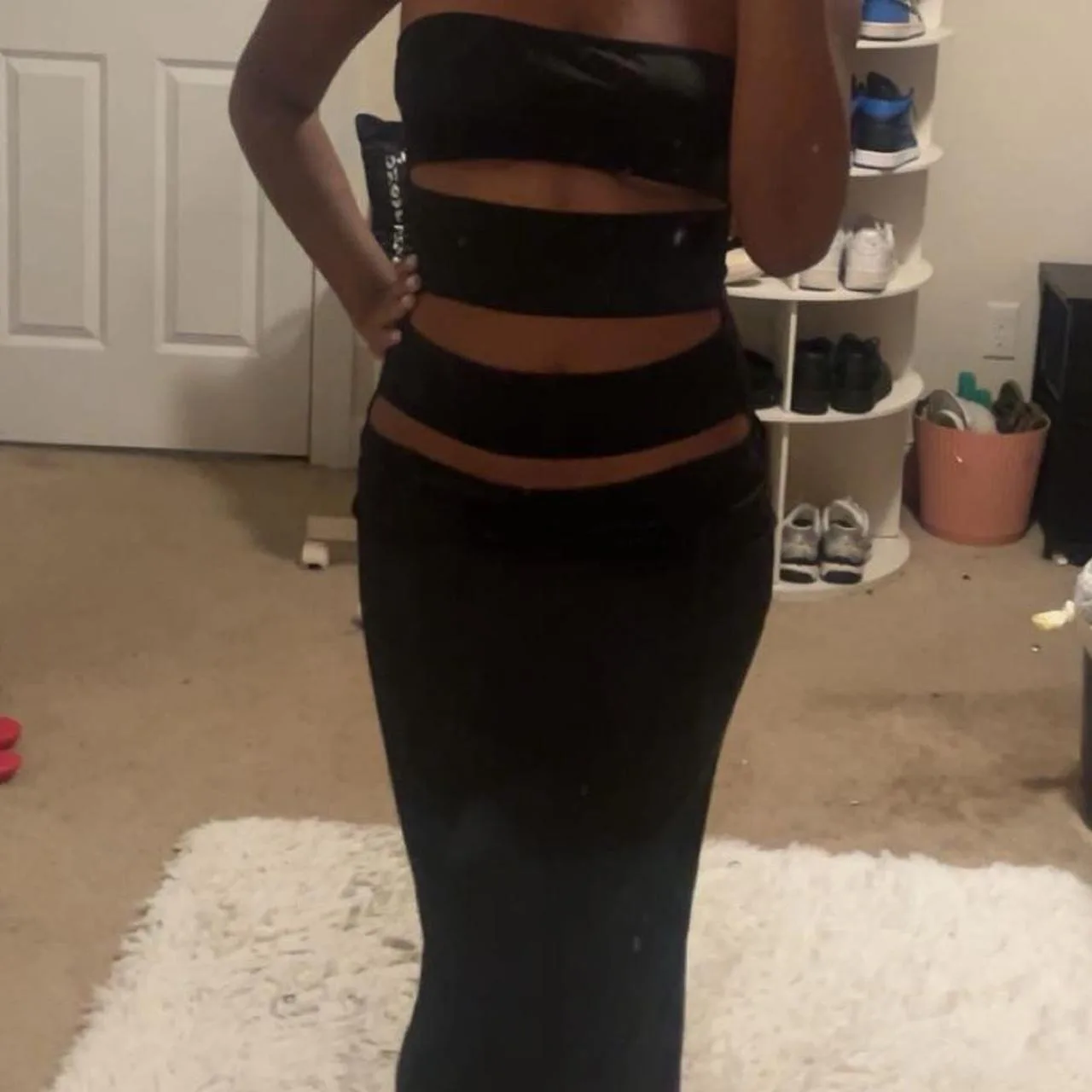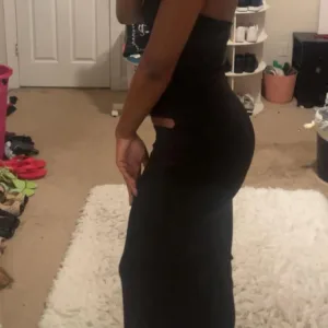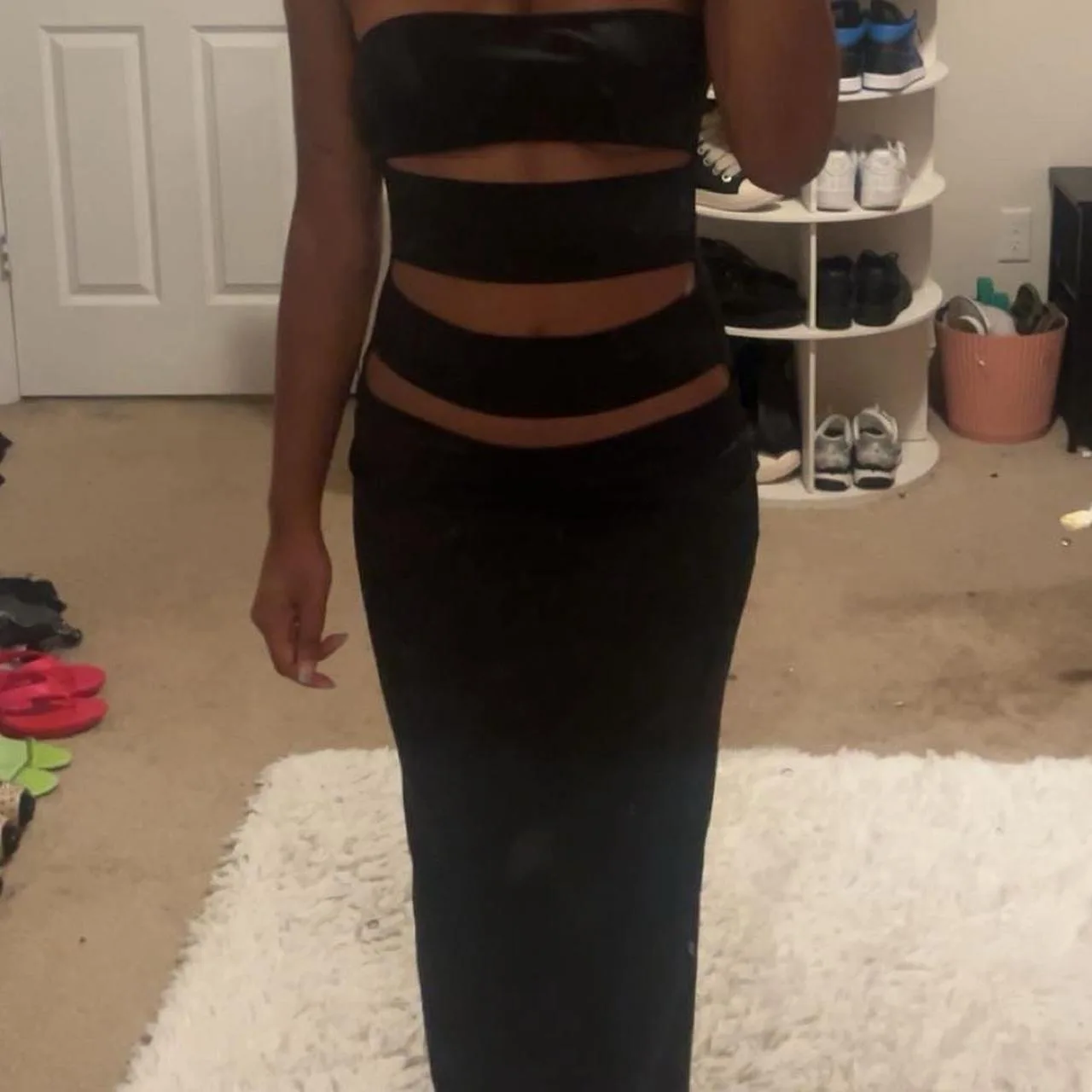 black cutout, maxi dress, slit dress, bodycon, sleek, minimalist, evening wear, goth aesthetic, y2k inspired, street style