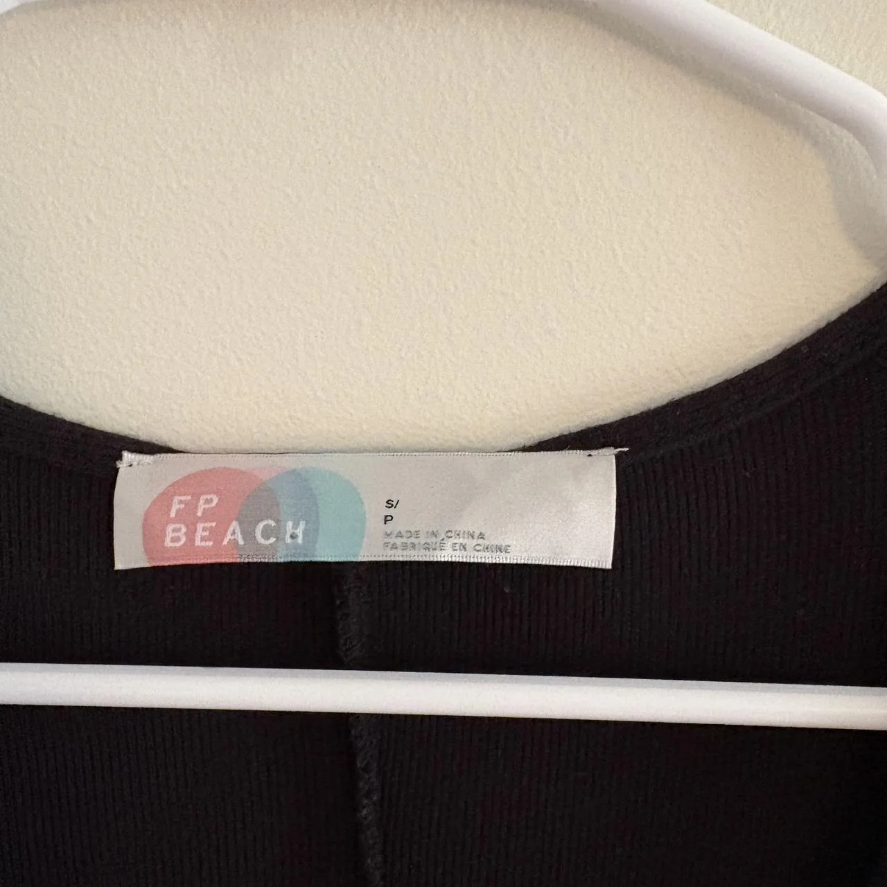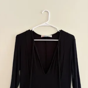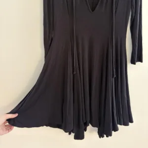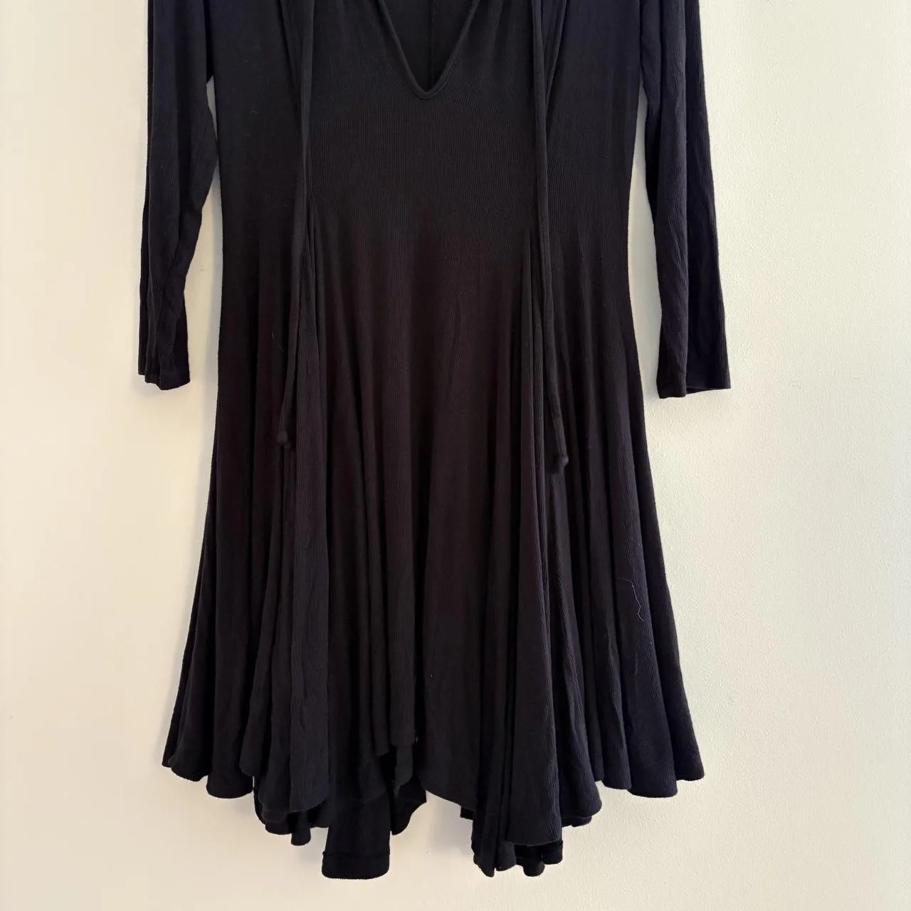 Black Ribbed V-Neck Knit Swing Mini Dress – Free People Beach, Size S, tie for keyhole look