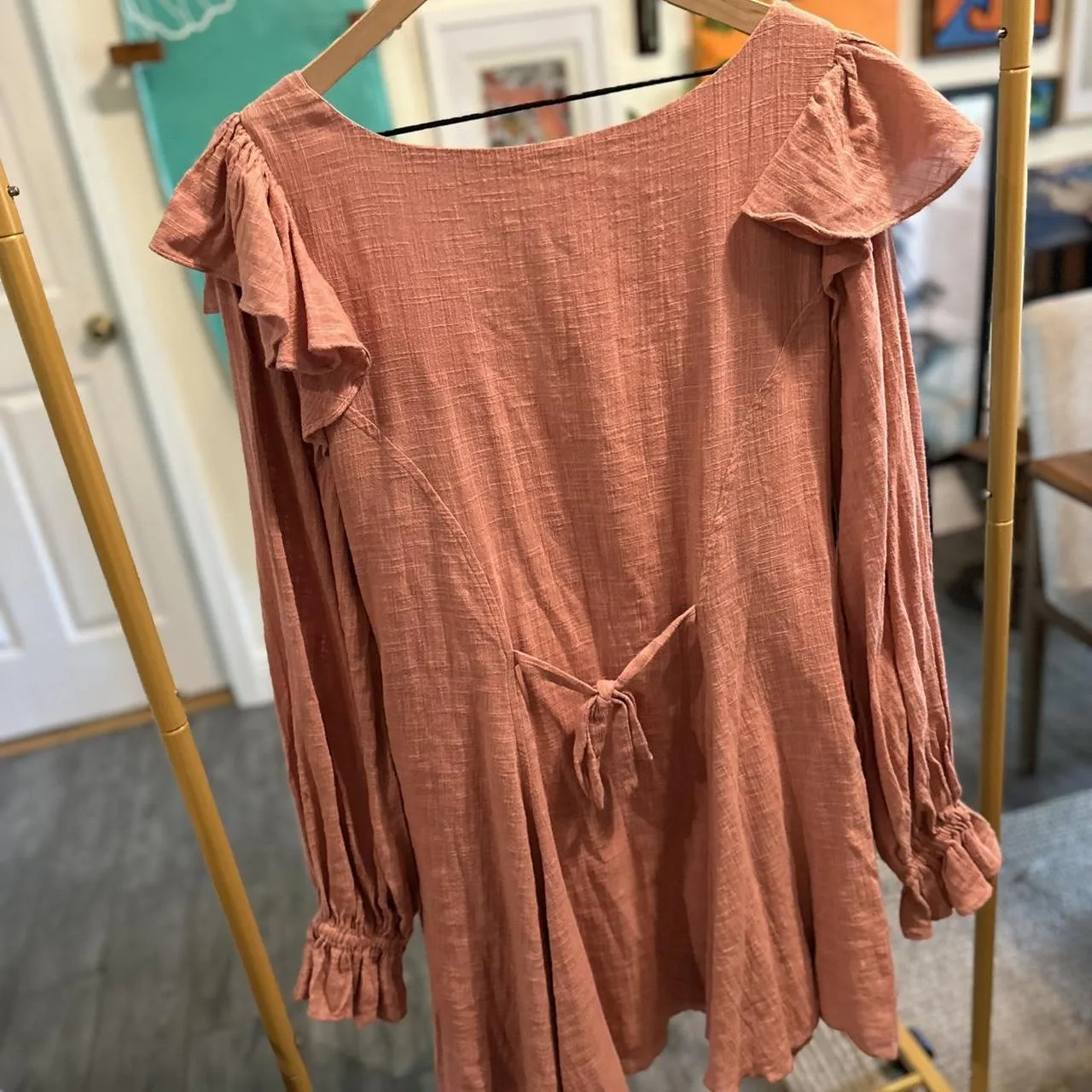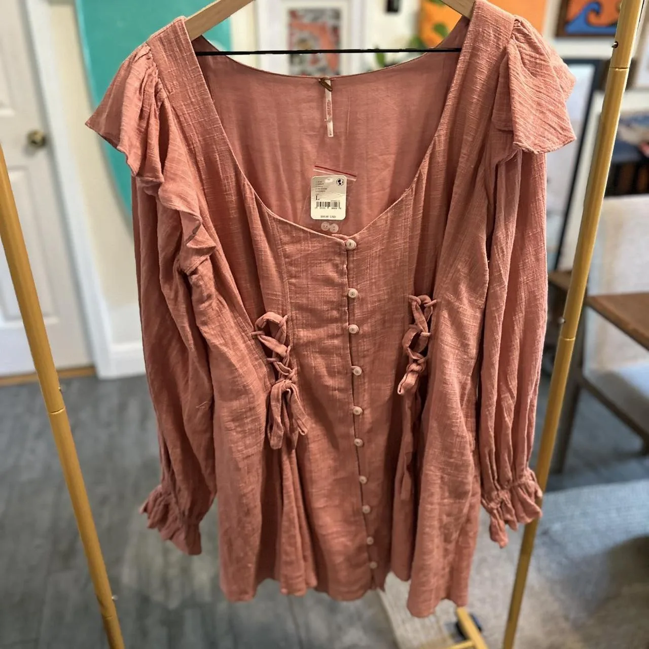 Free People pink dress with tie detail. New with Tags, Size L #boho #feminine #corsetry #freepeople #nwt