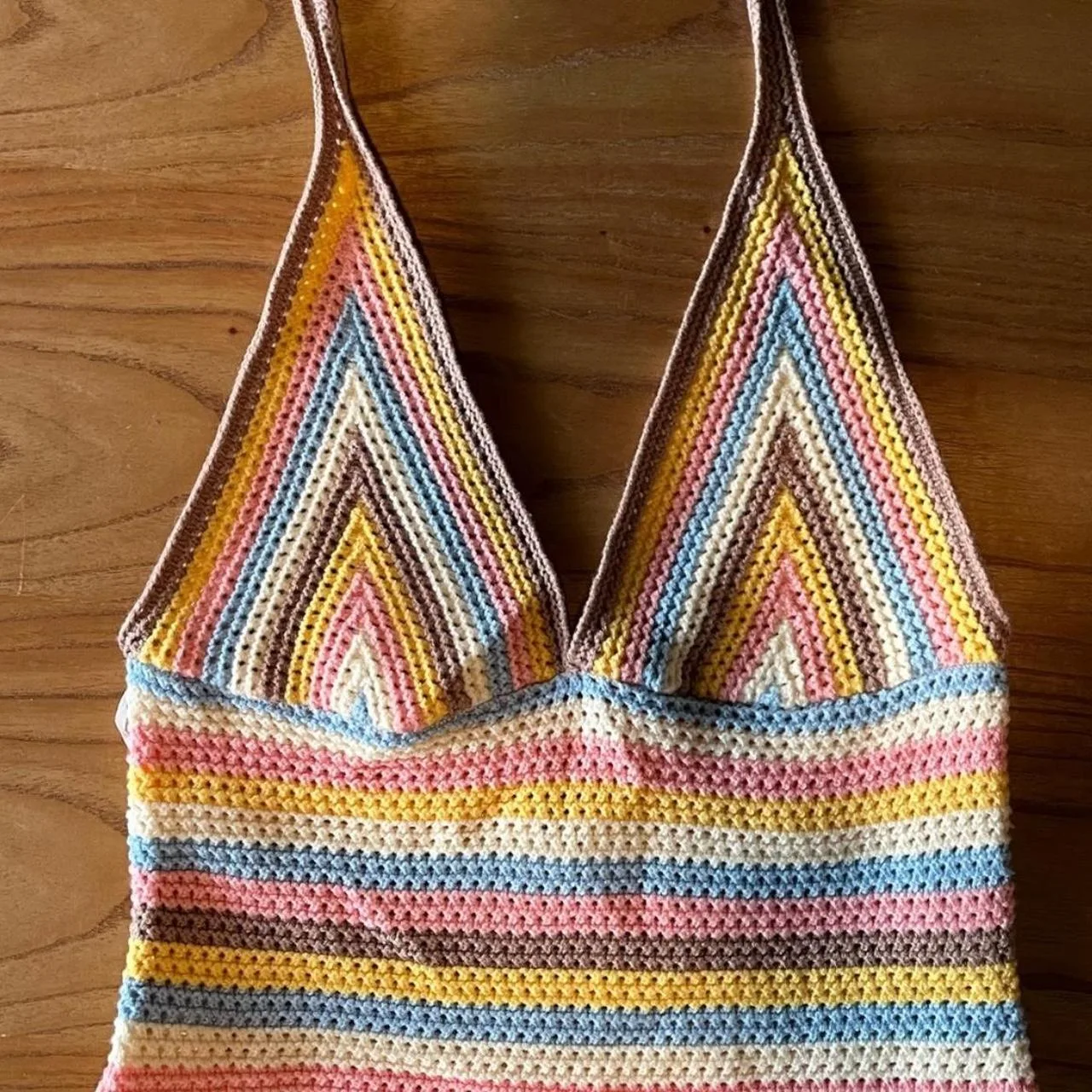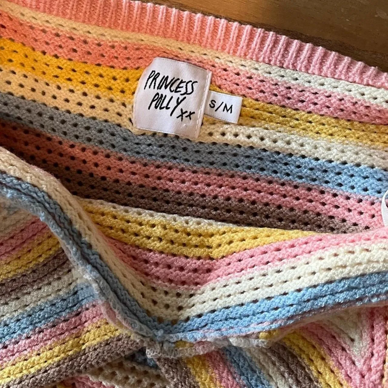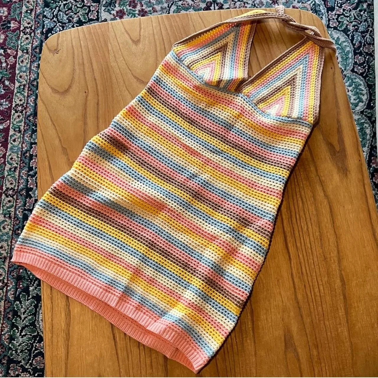 Princess Polly halter dress in Pink/Yellow/Blue/Brown crochet. Also beautiful as a swim cover up.