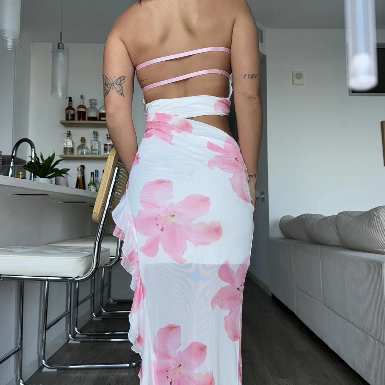 pink floral print maxi dress
