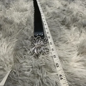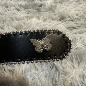 Black statement belt featuring ornate butterfly hardware, delicate beaded trim, and eye-catching silver-tone accents. A bold yet elegant Y2K piece that blends fairycore, gothic, and glam aesthetics perfectly.